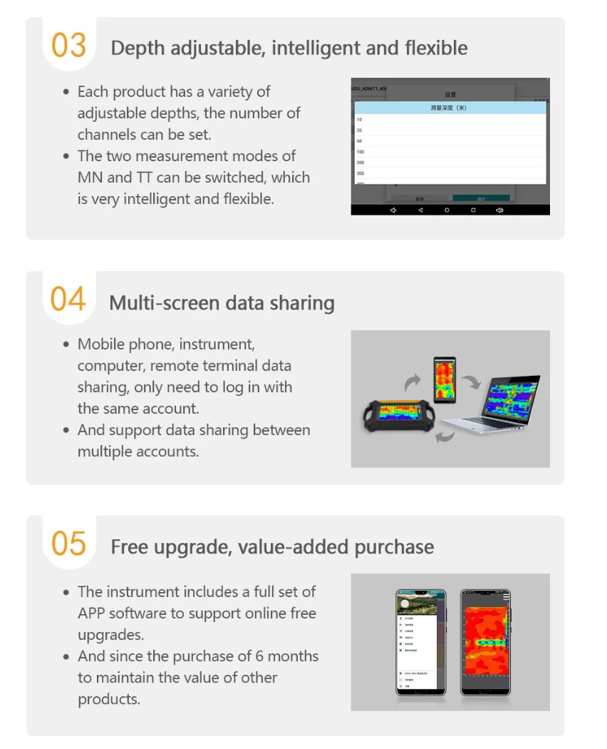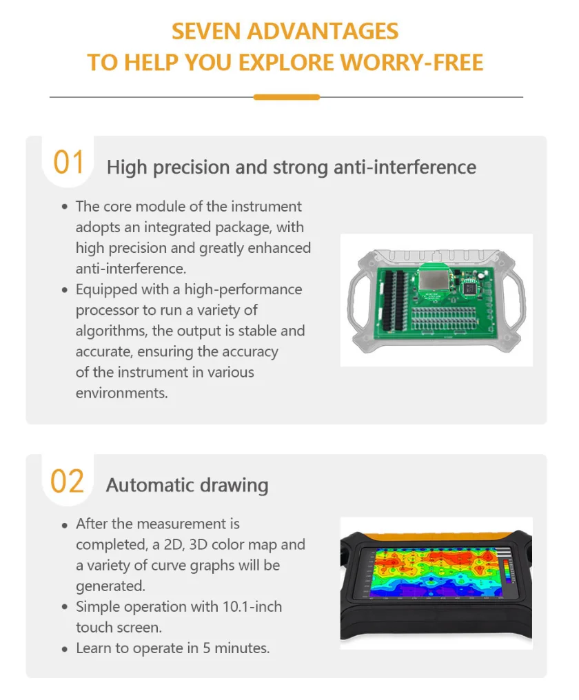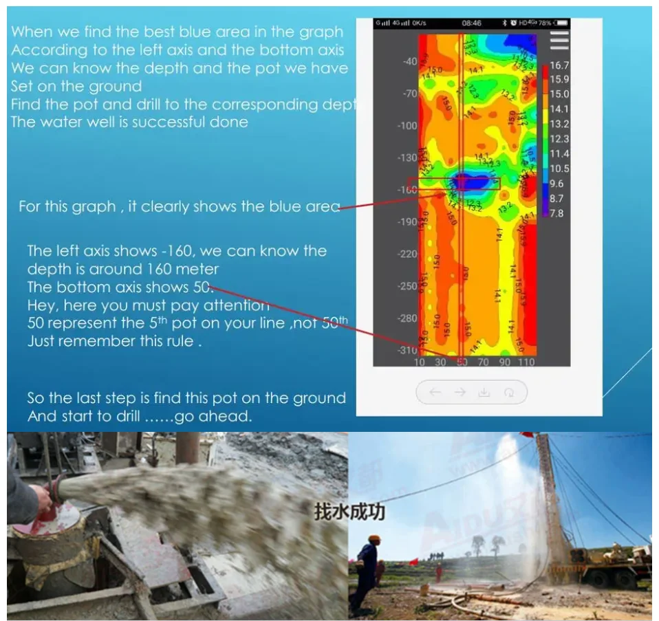 It reflects the change of underground resistivity by measuring the strength of natural electric field, so as to analyze and judge the location, depth, trend and other relevant information of groundwater, through detailed investigation, general survey and exploration of groundwater, to solve the needs of human and animal drinking water, industrial water and agricultural irrigation, plays a great role in the success of drilling wells for water, and has been well received by the majority of customers!