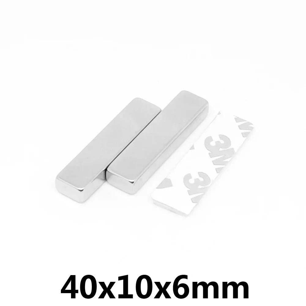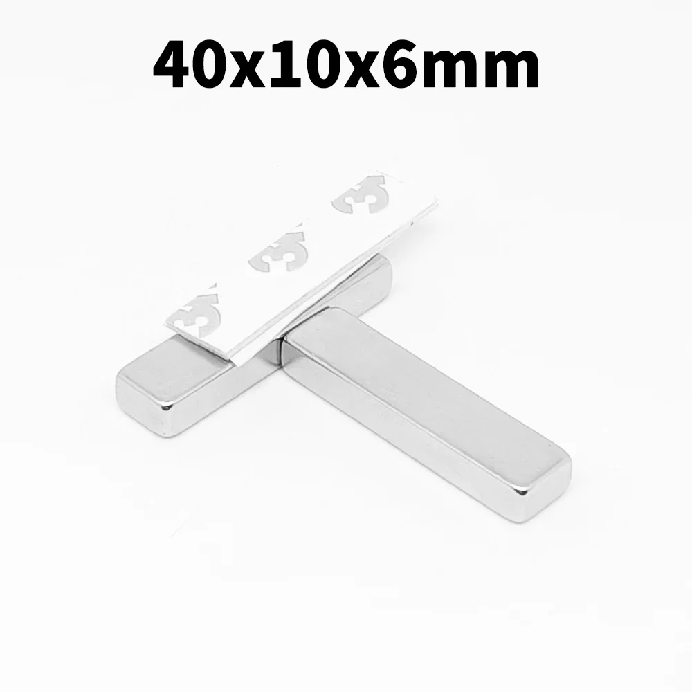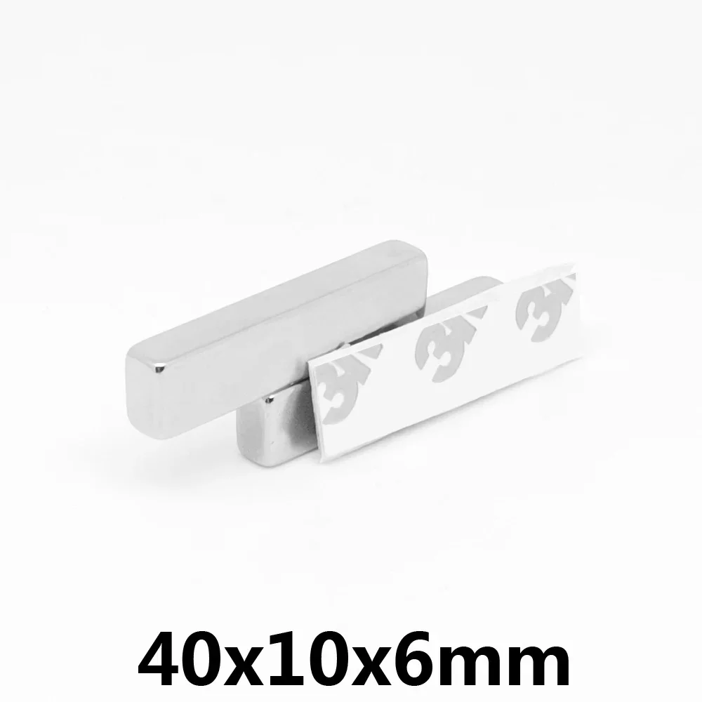 1/2/5/10/15/20PCS 40x10x6mm Thick Rectangular Neodymium Magnet With 3M Tape 40*10*6 Block Search Magnets Strong 40x10x6