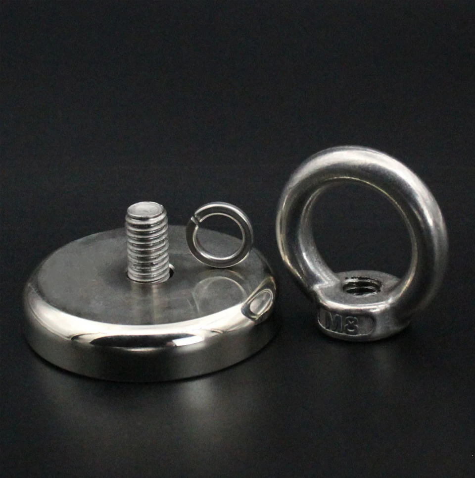 ▲Multi-purpose-unique design with countersunk holes and eye bolts is very suitable for fishing all kinds of iron-nickel materials underwater. It is a good idea for magnet fishing, lifting, hanging, and recycling applications. Search for eye bolts, screws, hooks, fasteners and other items in your warehouse garage or yard and have fun.