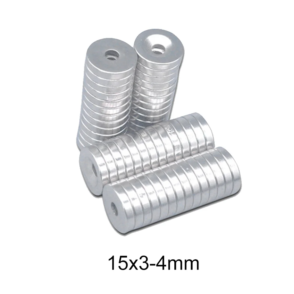 10~150PCS 15X3-4 mm Diameter Magnet 15X3 mm Hole 4mm Small Round Countersunk Magnets 15×3-4mm Neodymium Disc Magnetic 15*3-4 mm