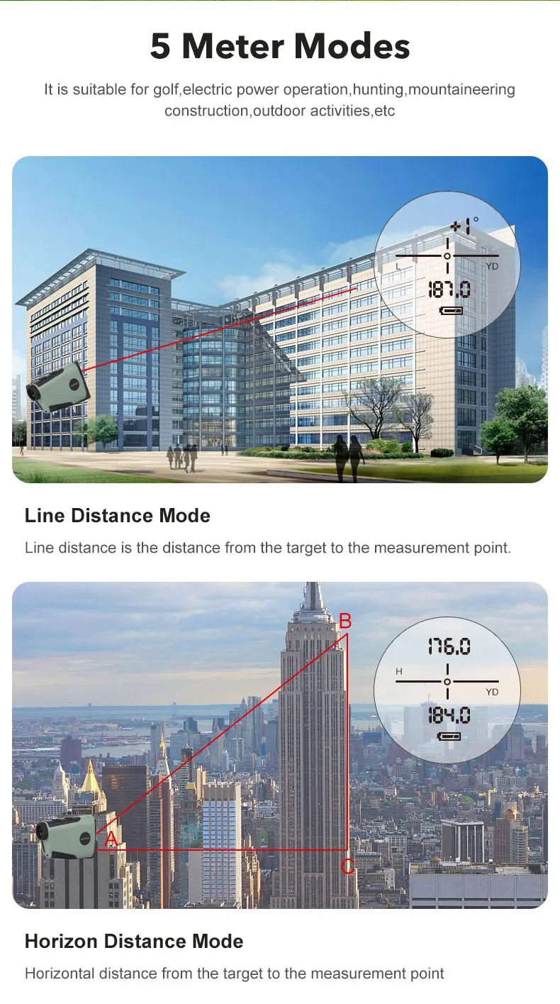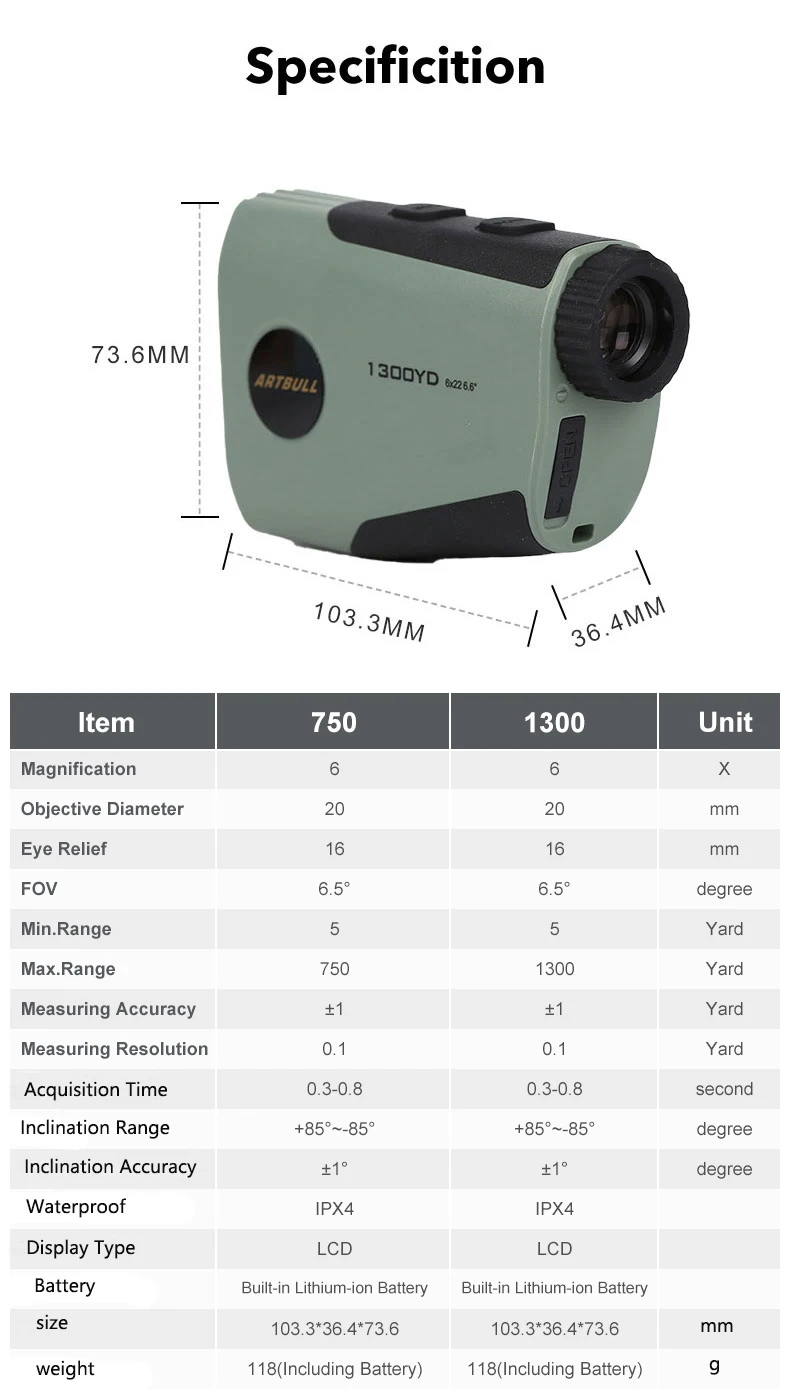 Measuring range: 5-750Yard ,5-1300Yard