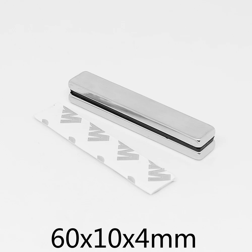 2/5/10/15/20PCS 60x10x4mm Strong Block Search Magnet With 3M Self – Adhesive 60x10x4 Strip Permanent NdFeB Magnet 60x10x4