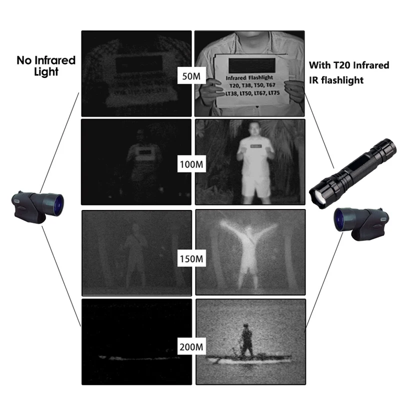 200Yards LED Infrared Flashlight Zoomable Hunting Torch 940 nm Adjustable IR light Night Vision+18650+Charger+Mount+Switch+Box