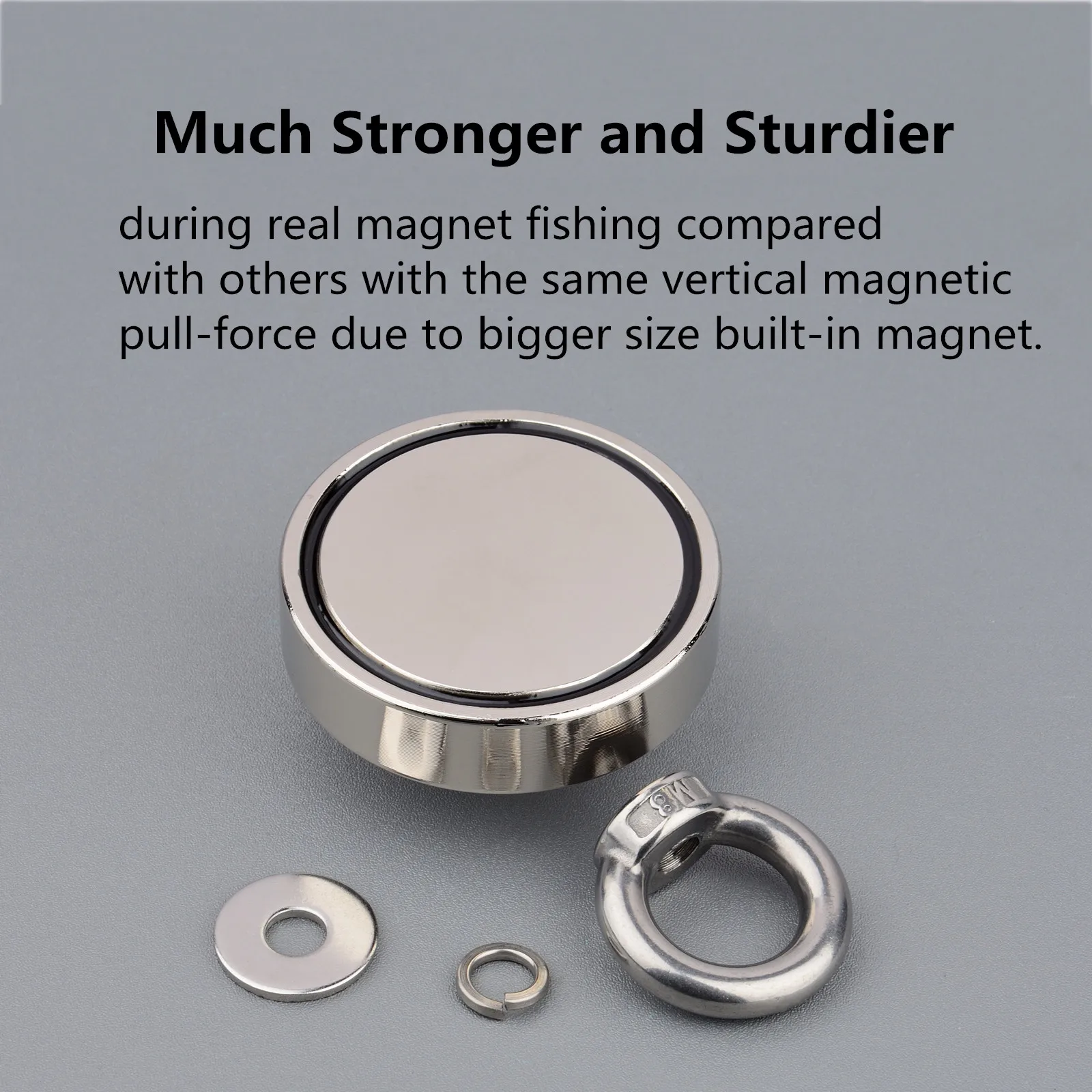 –It is designed forheavy duty and underwater useand helps torecoverlost equipment, tools, fishing tackles and other ferrous objects in deep water, wells, holes. It is also great for magnet lifting, hanging applications.