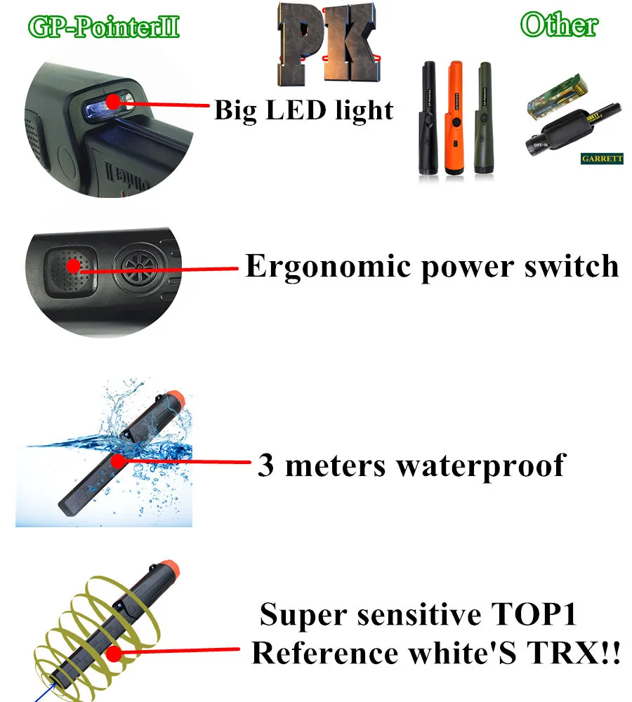 2024 Upgrade Sensitive Metal Detector Pointer Pinpoint GP-pointerII Waterproof Hand Held Static Induction with Bracelet