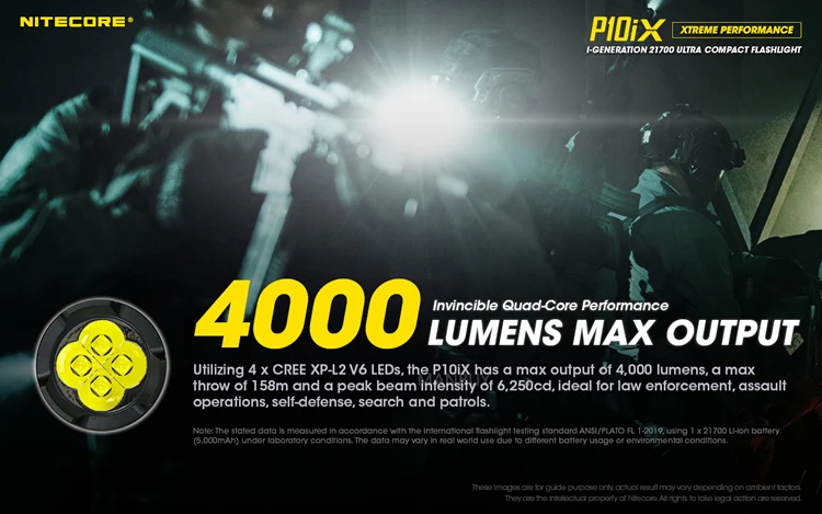 Upgrade your tactical gear with the Nitecore P10iX. This quad LED light uses four CREE XP-L2 V6’s to achieve a max output of 4,000 lumens! Ideal for law enforcement, self-defense, and patrols, the P10iX has a maximum throw of 158 meters for long-range targeting.webdesign from manbuy.