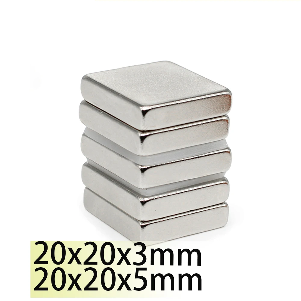 30/50pcs 20x20x3 20x20x5 Neodymium Bar Block Strong Magnets Search Magnetic Bar Ndfeb Square Project Fridge 20×20 Magnet