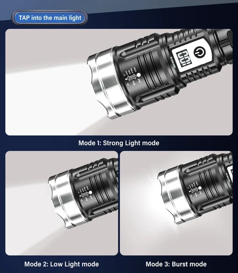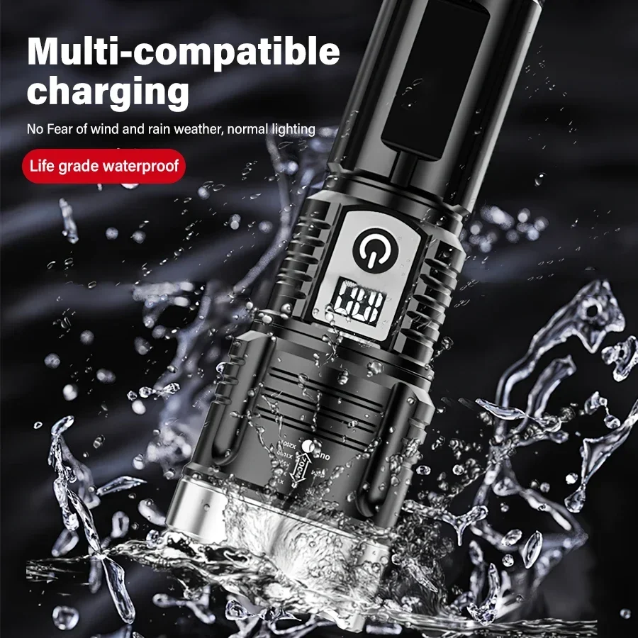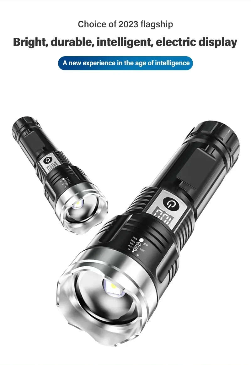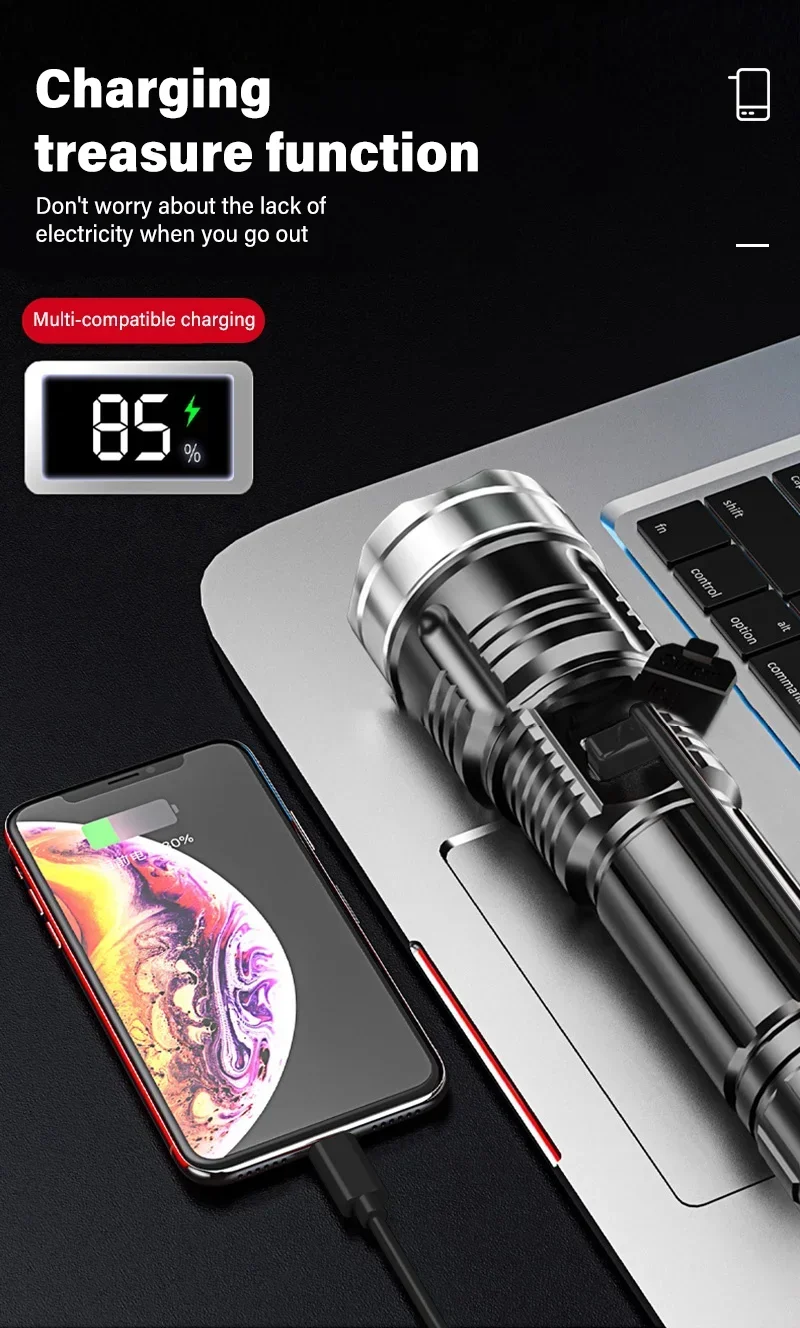 30W Super Bright LED Flashlight Zoom In/Out Torch USB Rechargeable Torch With Power Indicator Camping Hiking Flash Light