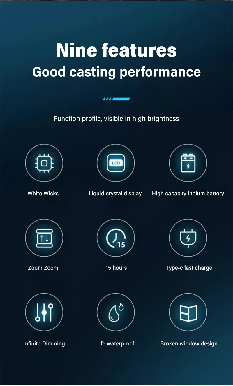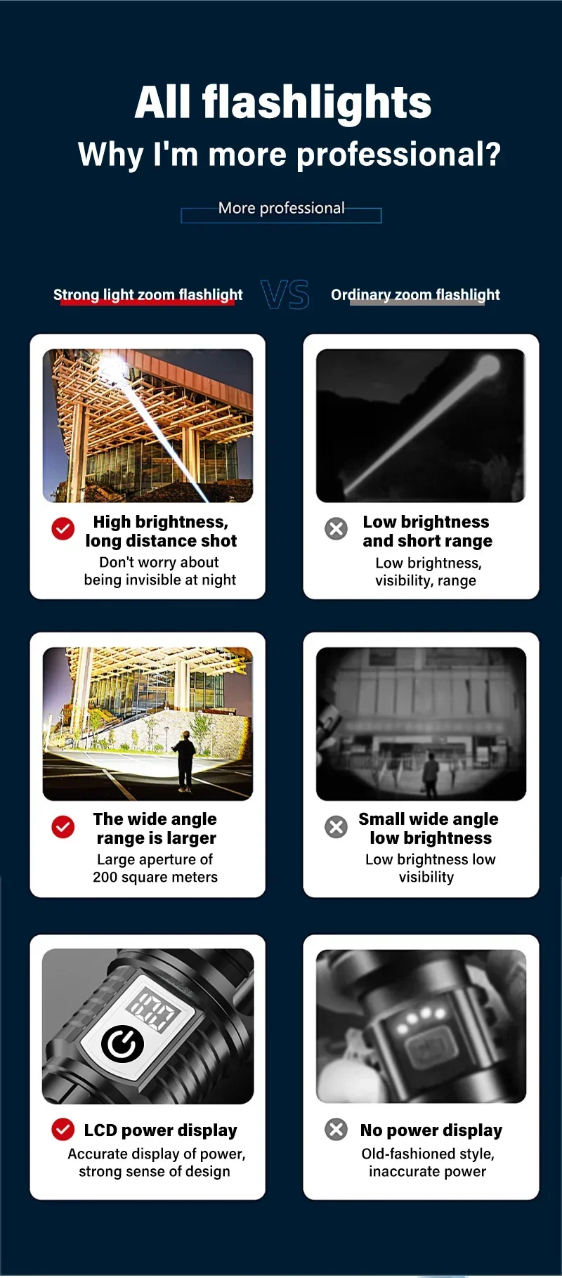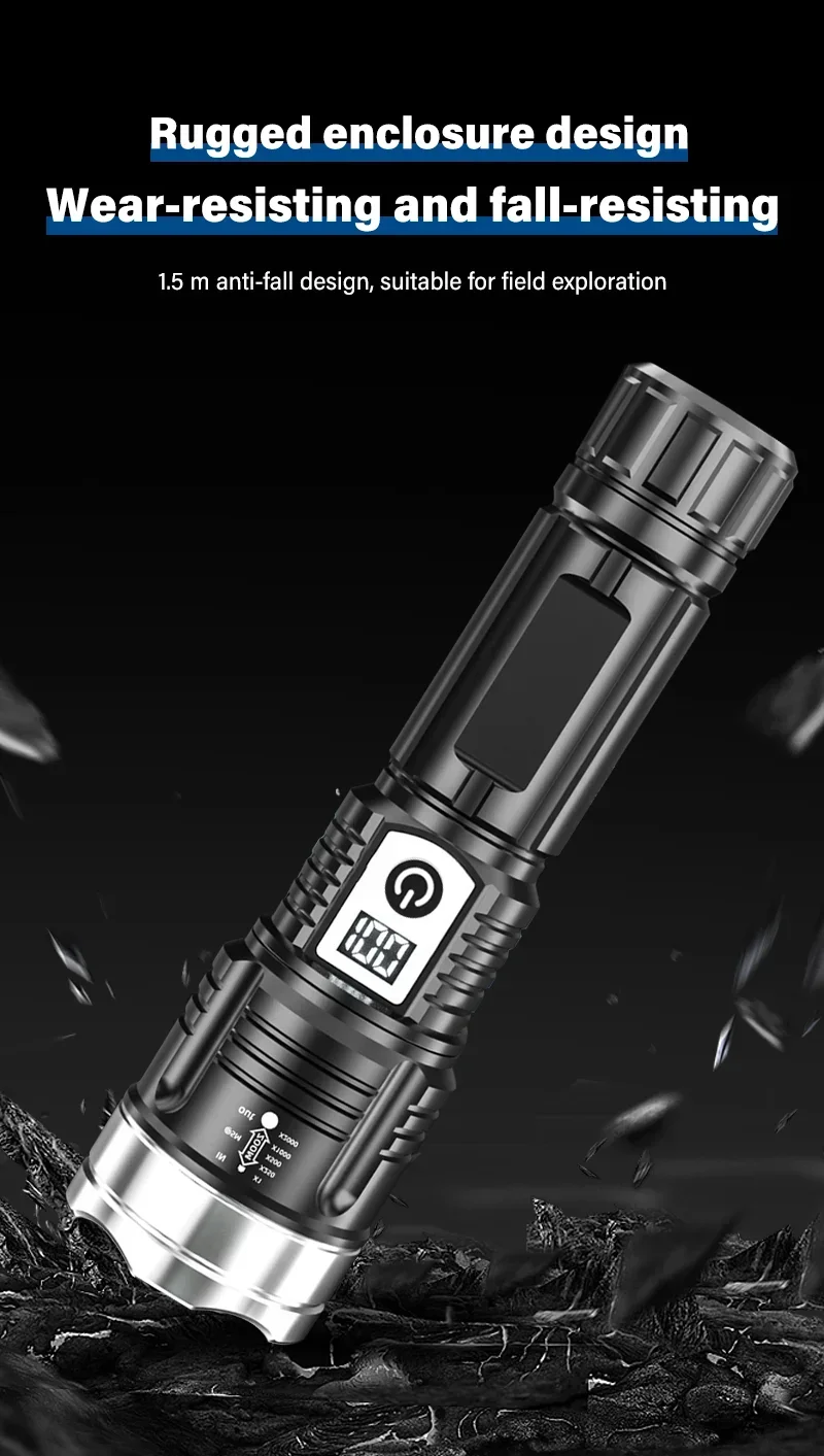 30W Super Bright LED Flashlight Zoom In/Out Torch USB Rechargeable Torch With Power Indicator Camping Hiking Flash Light
