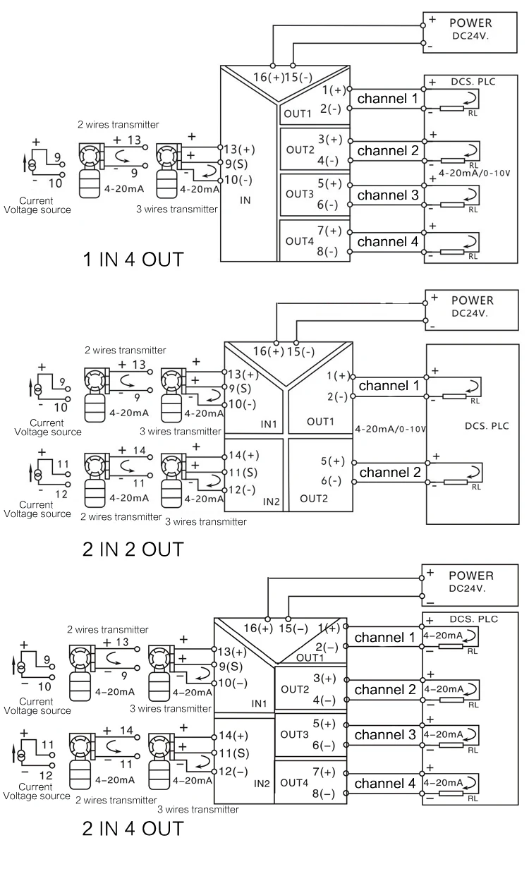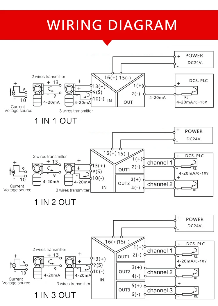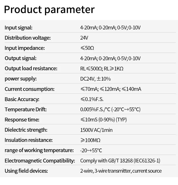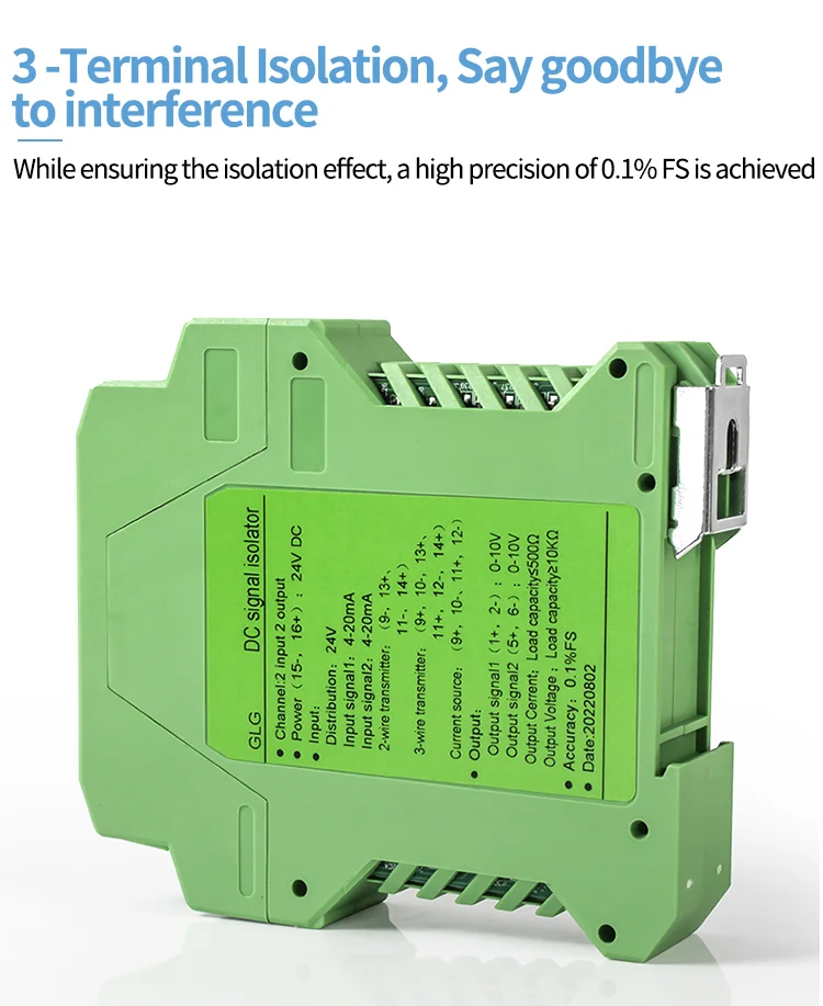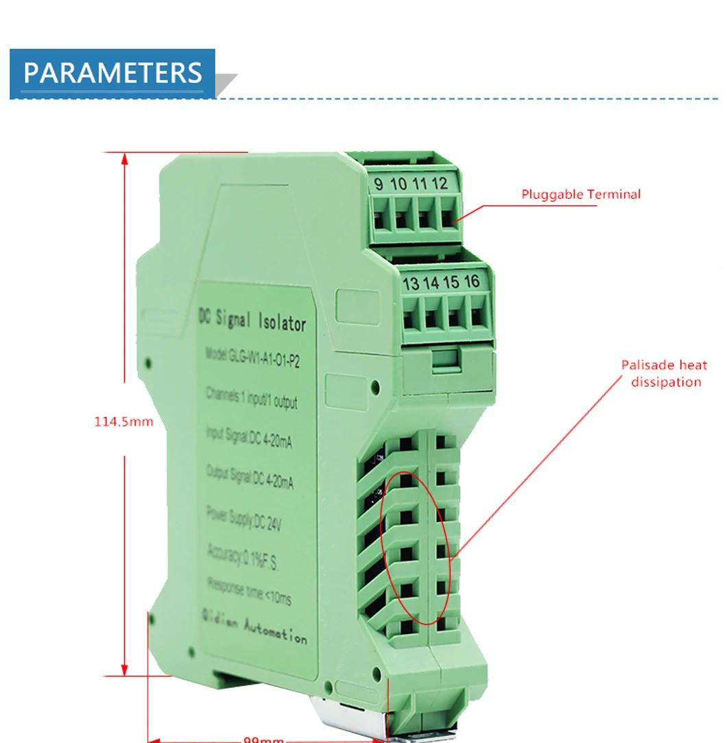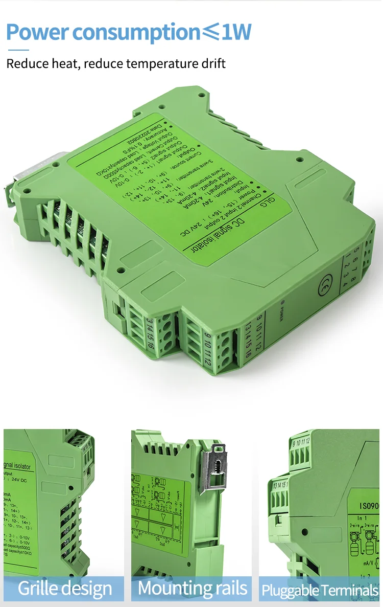 4-20mA Signal Isolator 2 In 2 Out Multi Channel DC Signal Converter Isolator 4-20ma to 0-10V DC24V Analog Signal Isolator