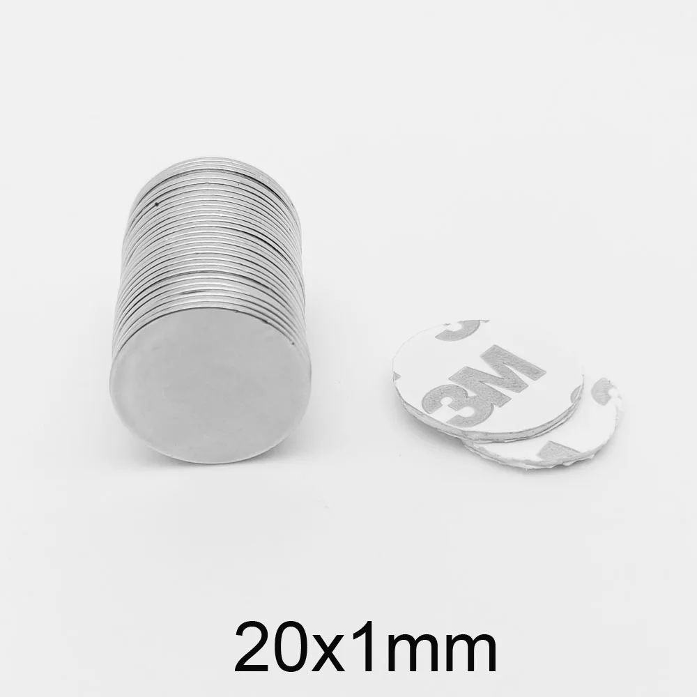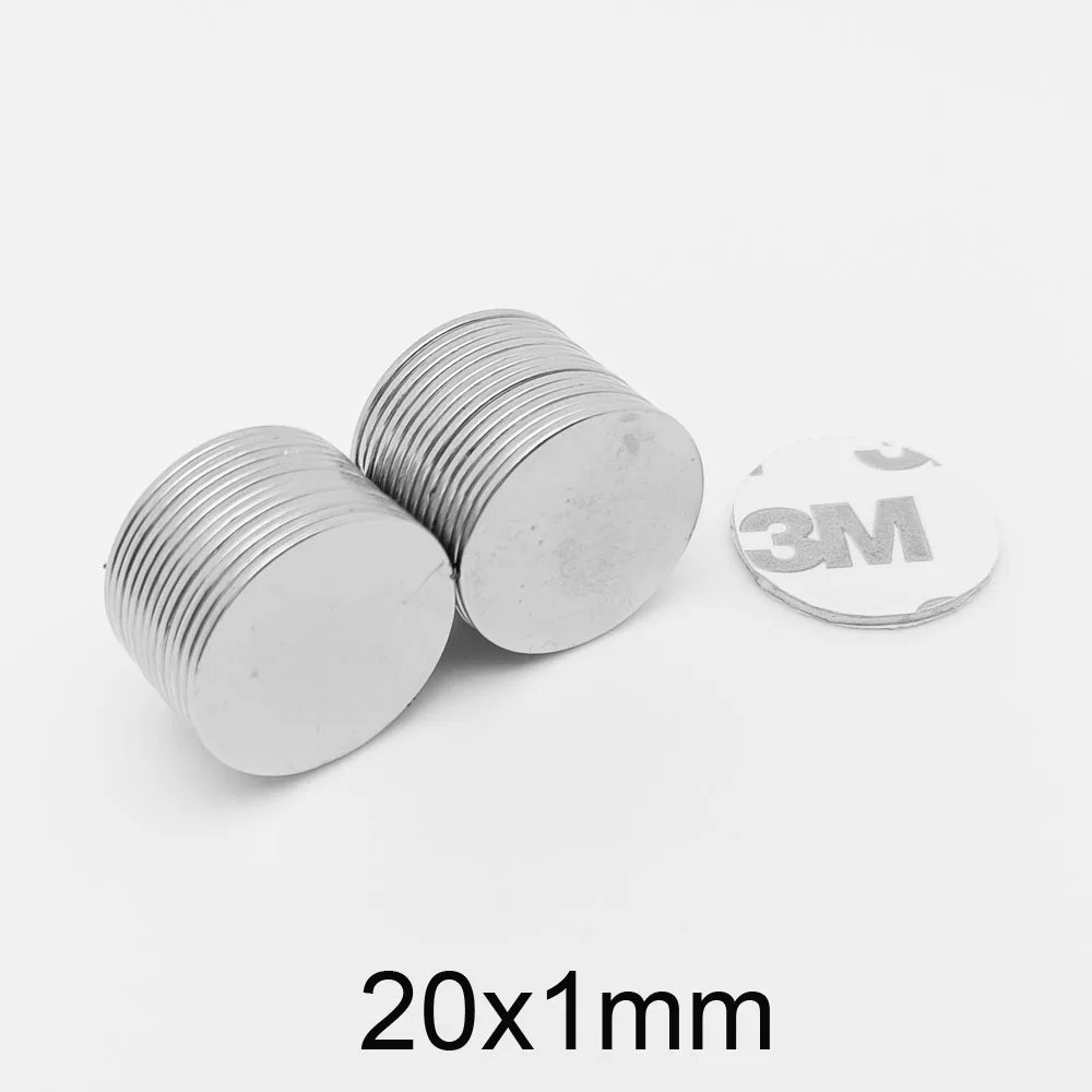 5/10/20/50/100/200pcs 20×1 Strong Powerful Magnets With 3M Tape 20x1mm Round Search Magnet 20*1 Permanent Neodymium Magnet Disc