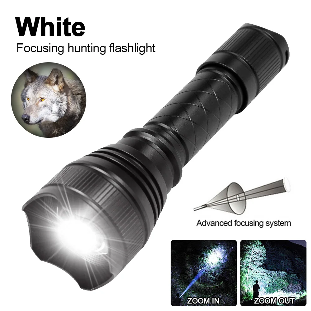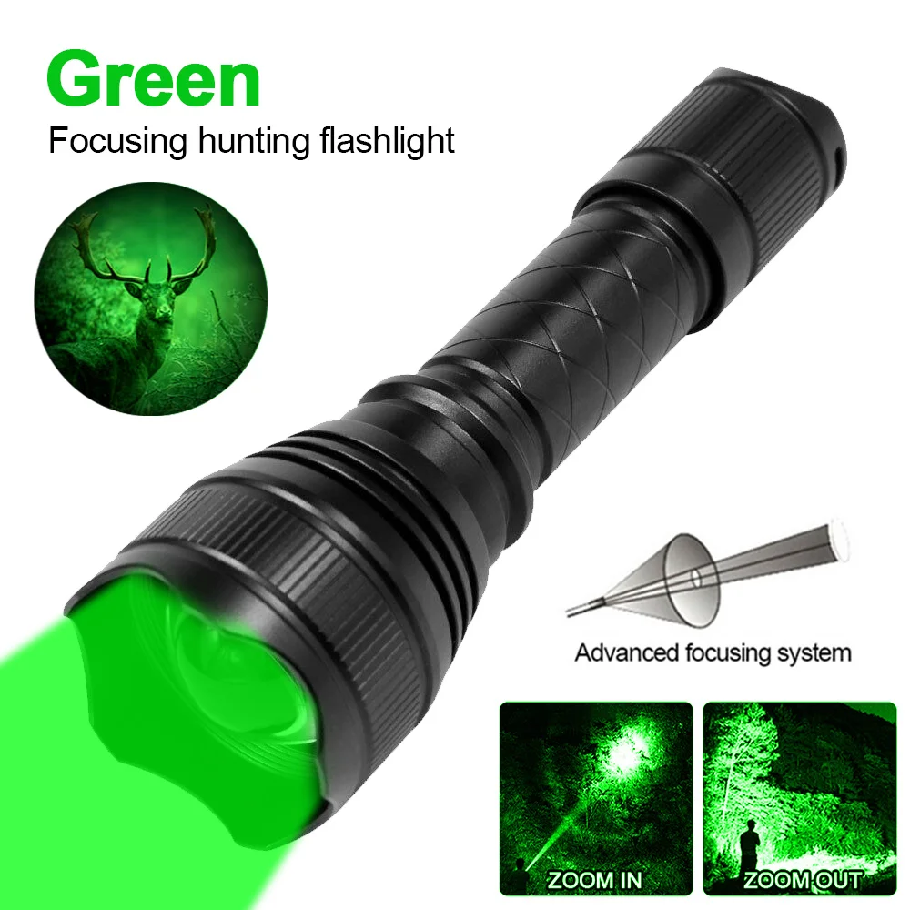 500 Yards T21 Professional Green Red Hunting Flashlight 1-Mode Zoom Torch USB Rechargeable Hog Predator Varmint Lantern