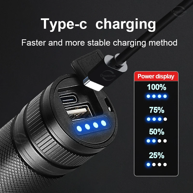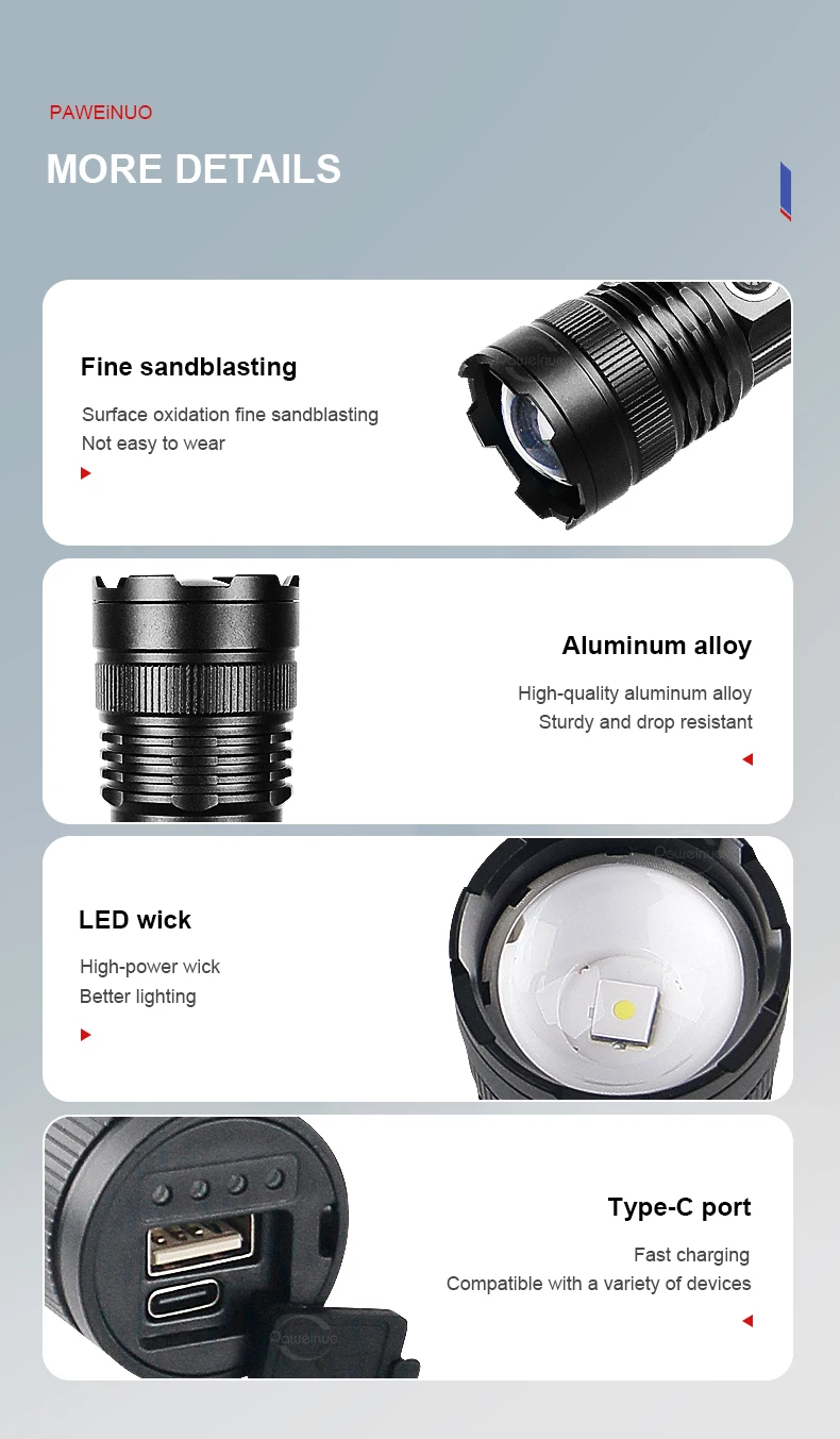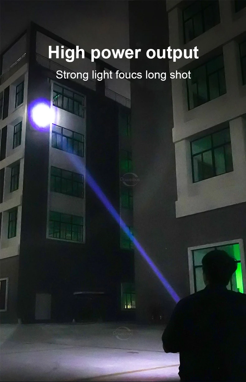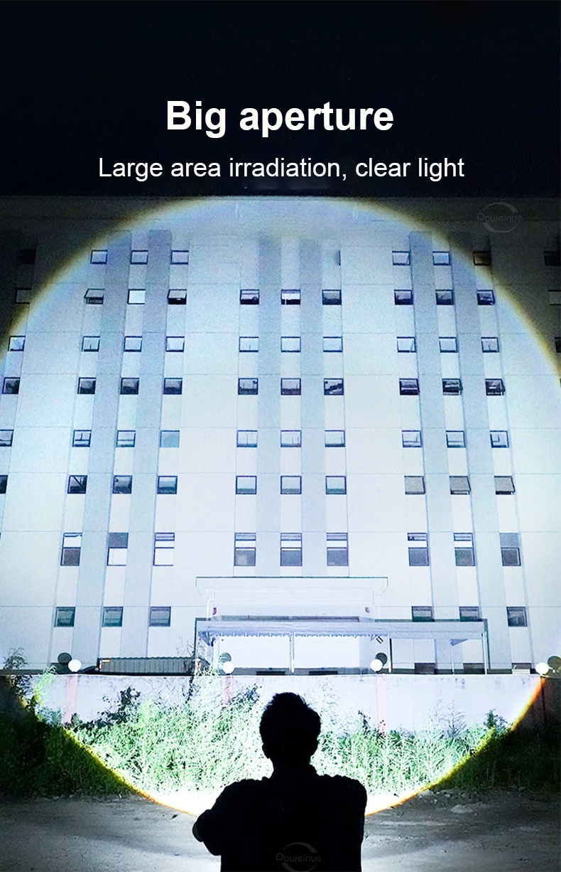 1. The latest super spotlight core, with upgraded brightness and irradiation distance 3 times that of ordinary flashlights, can focus the light without astigmatism.