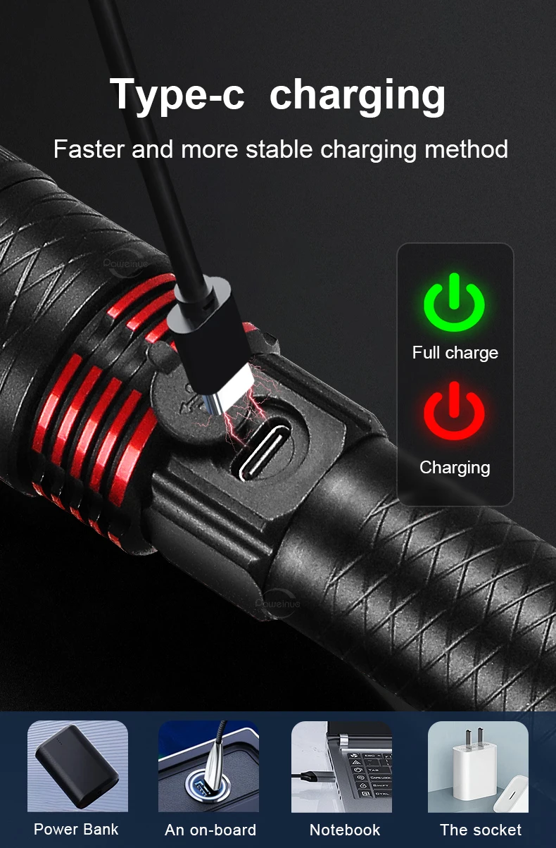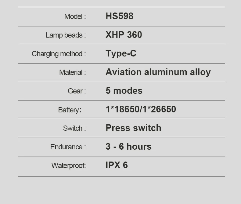 3. Rechargeable: 18650/26650 battery (not included), Type-C USB charging, supports 5V1A input and output, and can be used as an emergency power supply for mobile phones and mobile power banks.