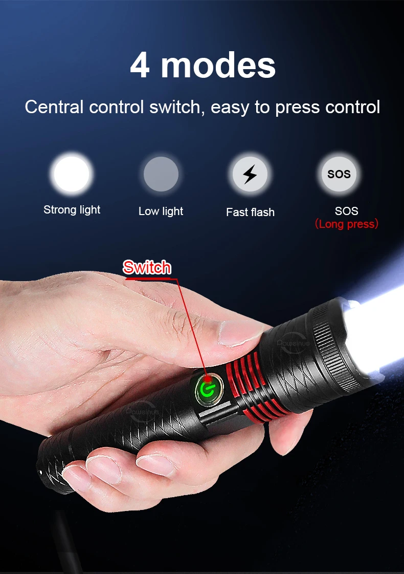 Lighting mode: strong light-low light-fast flash-SOS