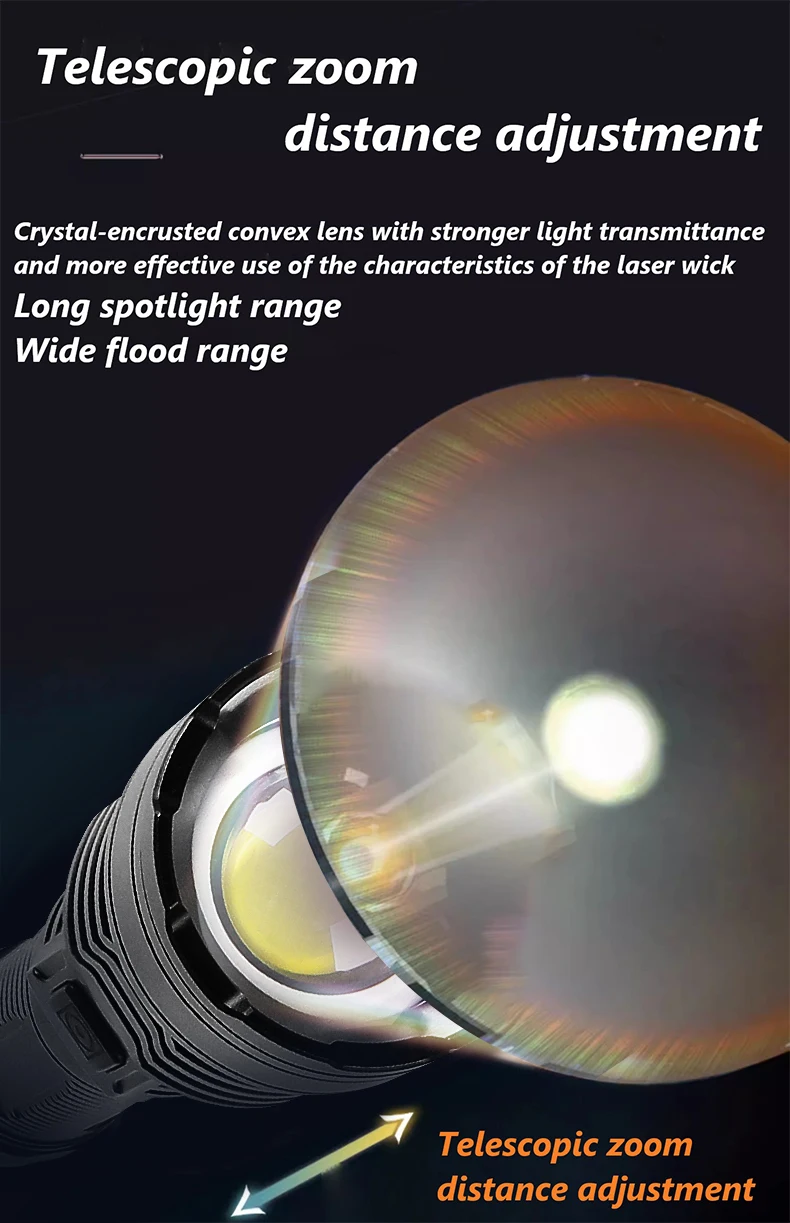 1. White laser Using XHP360 lamp beads, the maximum lumen output can reach 980,000,000 lumens, and the maximum lighting distance can reach 5,000 meters. It can light up buildings easily and is the best choice for your outdoor adventures.