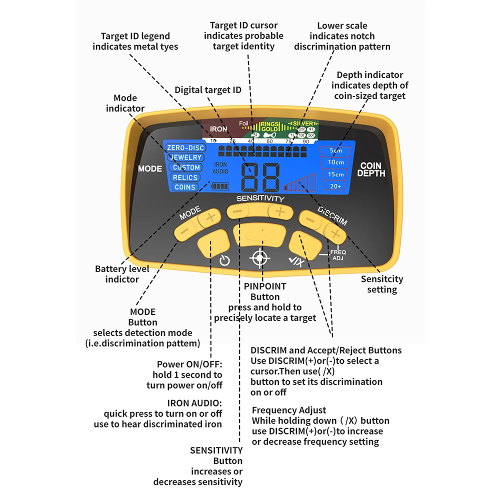 6450 Professional Underground Metal Detector IP68 Waterproof Coil for Treasure Search Detector De Metais Pinpointing Positioning