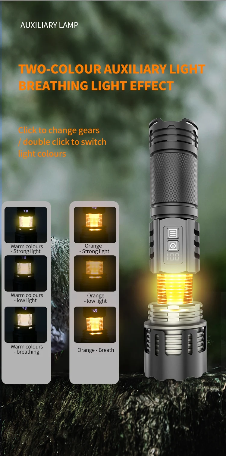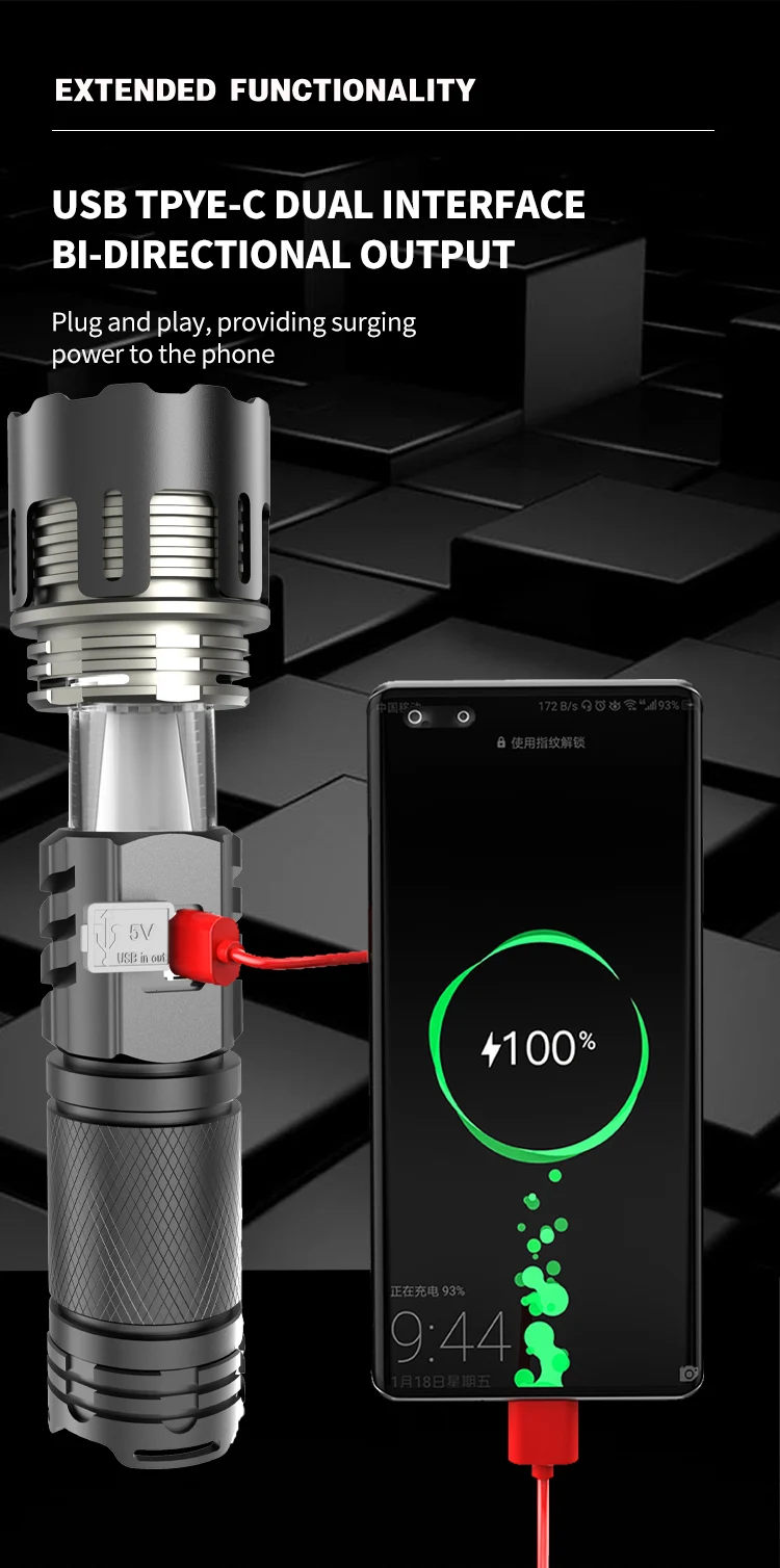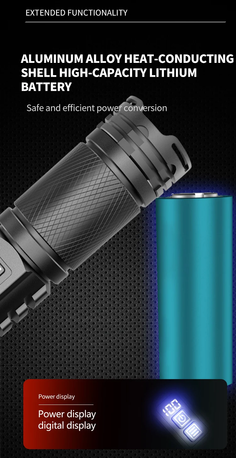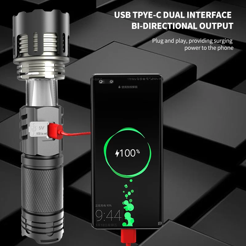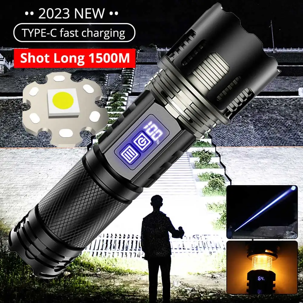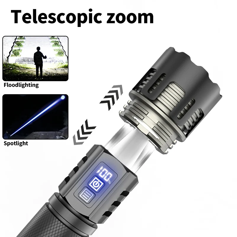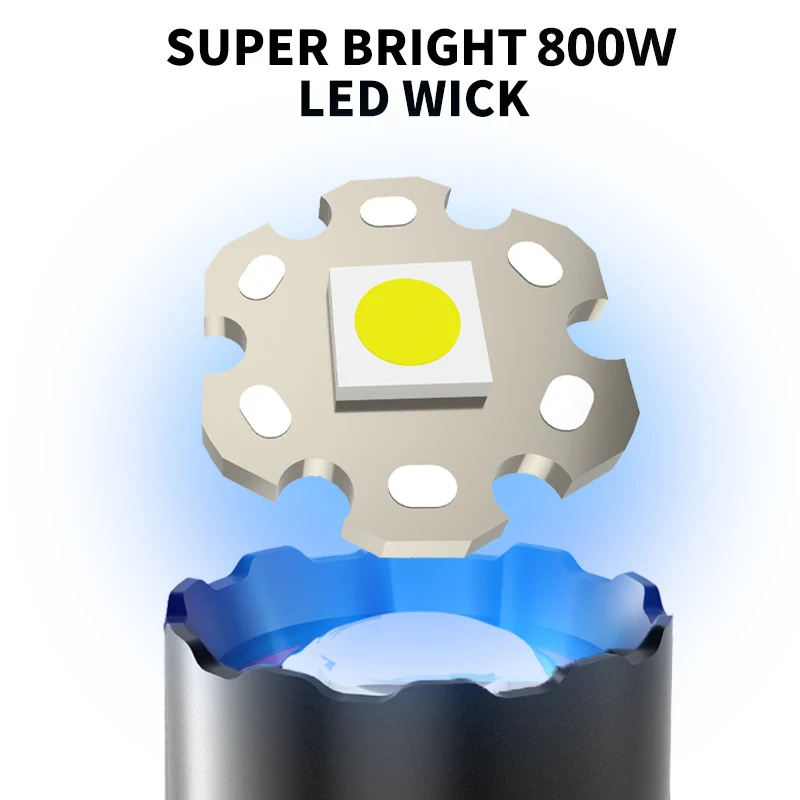800W LED Powerful 2IN1 Camping Flashlight TYPE-C Rechargeable Flash Light 5200MAh LED Flashlights Zoom Lantern Long Shot Torch