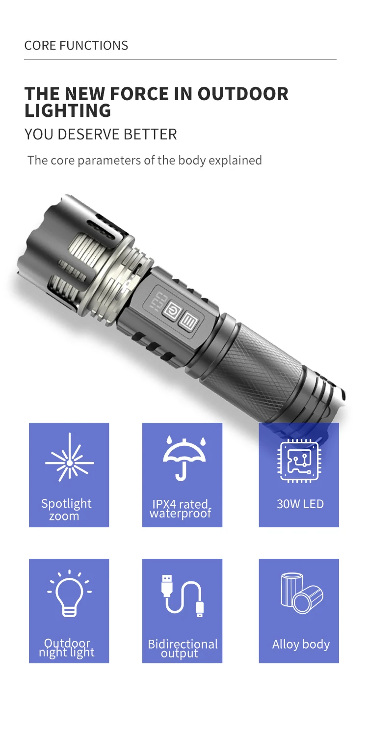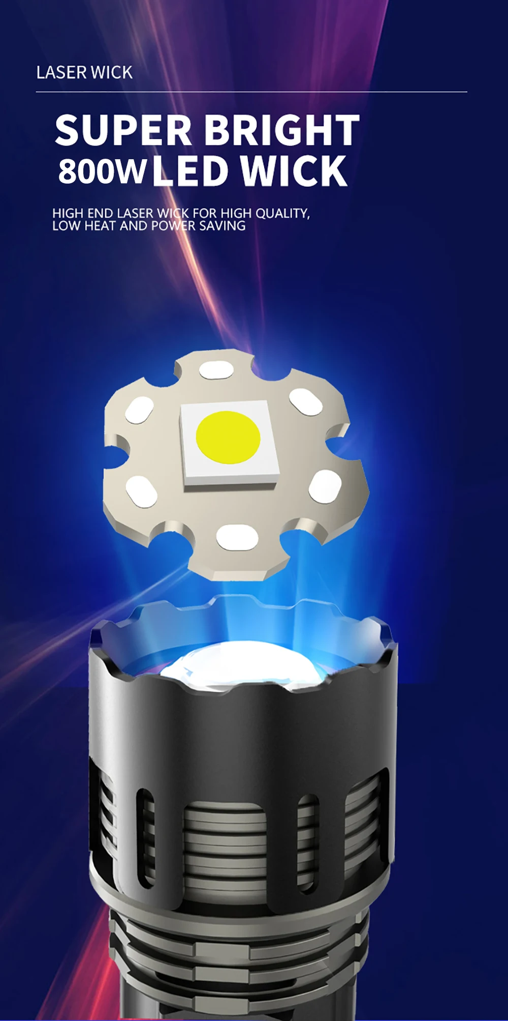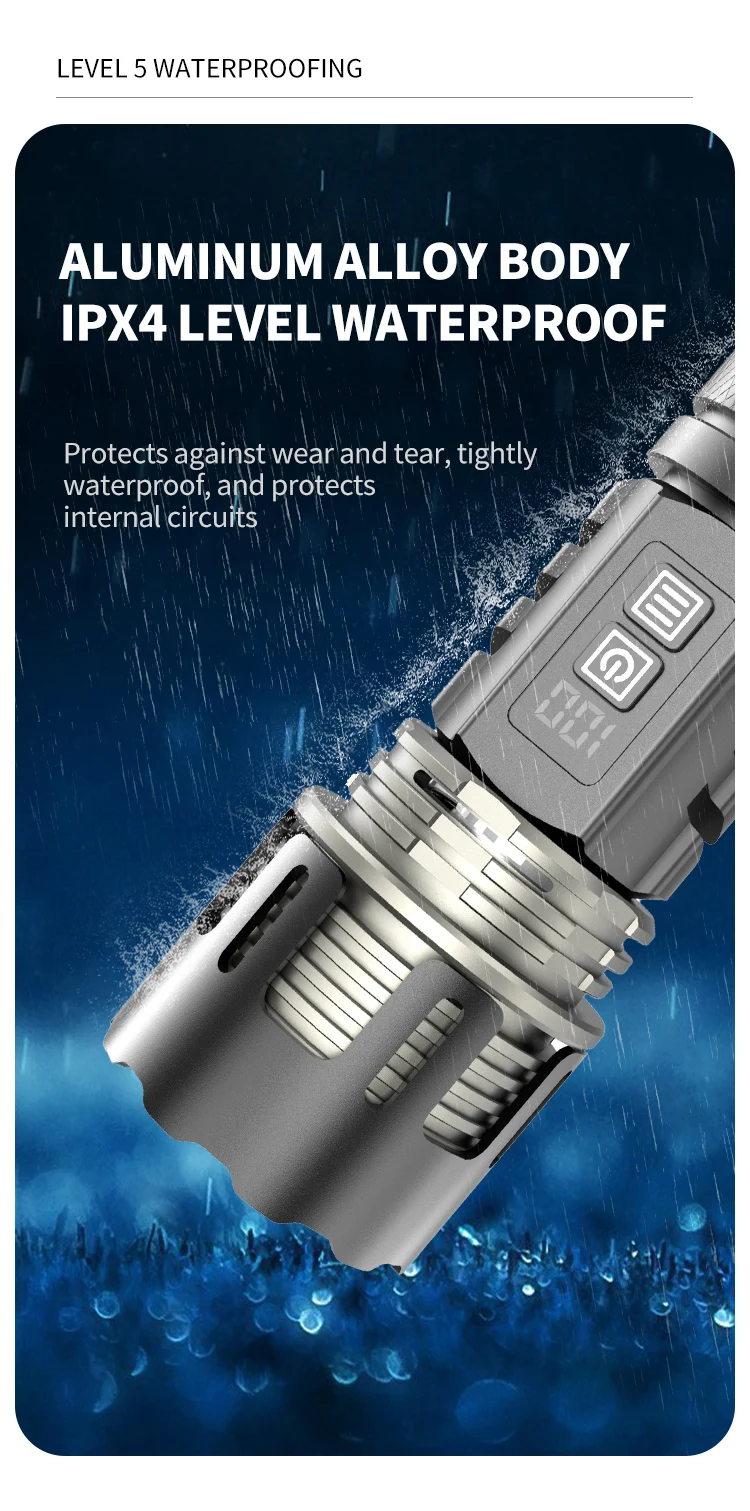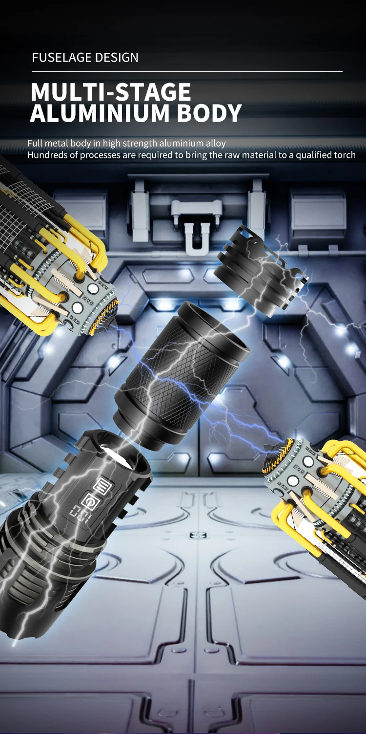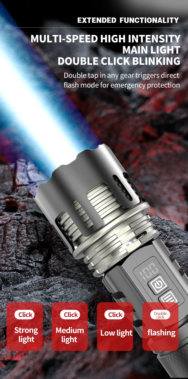 800W LED Powerful 2IN1 Camping Flashlight TYPE-C Rechargeable Flash Light 5200MAh LED Flashlights Zoom Lantern Long Shot Torch