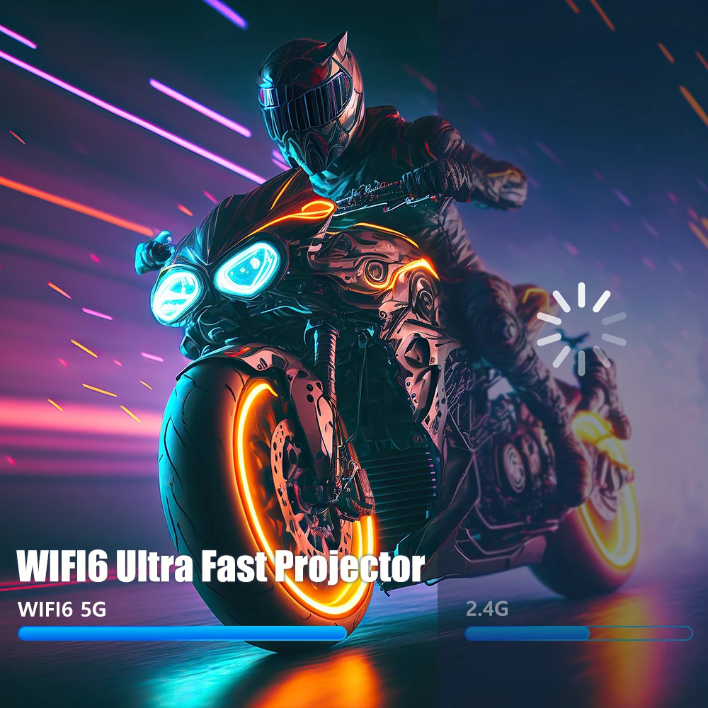 המקרן משתמש במקרןWifi 6טכנולוגיה, השידור הוא מהיר יותר ויציב יותר, ליהנות מחוויית צפייה ומשחקים! ניתן לראות מסך אלחוטי שיקוף דרך פלא