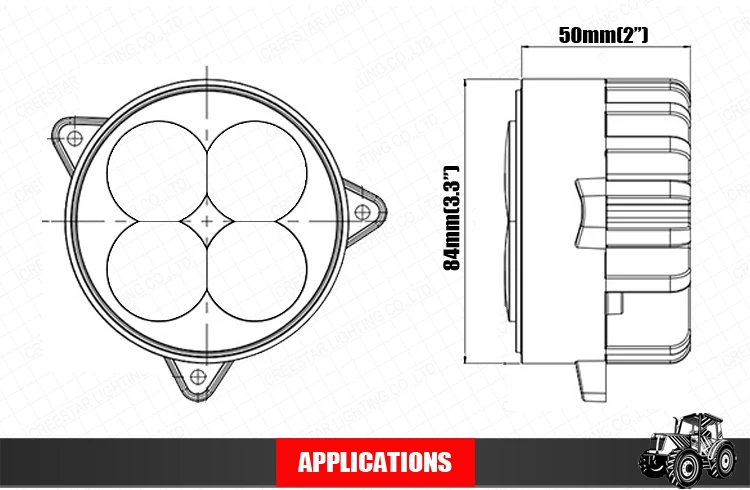 AL209455 Round 40W LED Front Hood Light For John Deere 6105M, 6110M, 6115M, 6120M, 6125M, 6130M Tractors x2Pcs/Lots