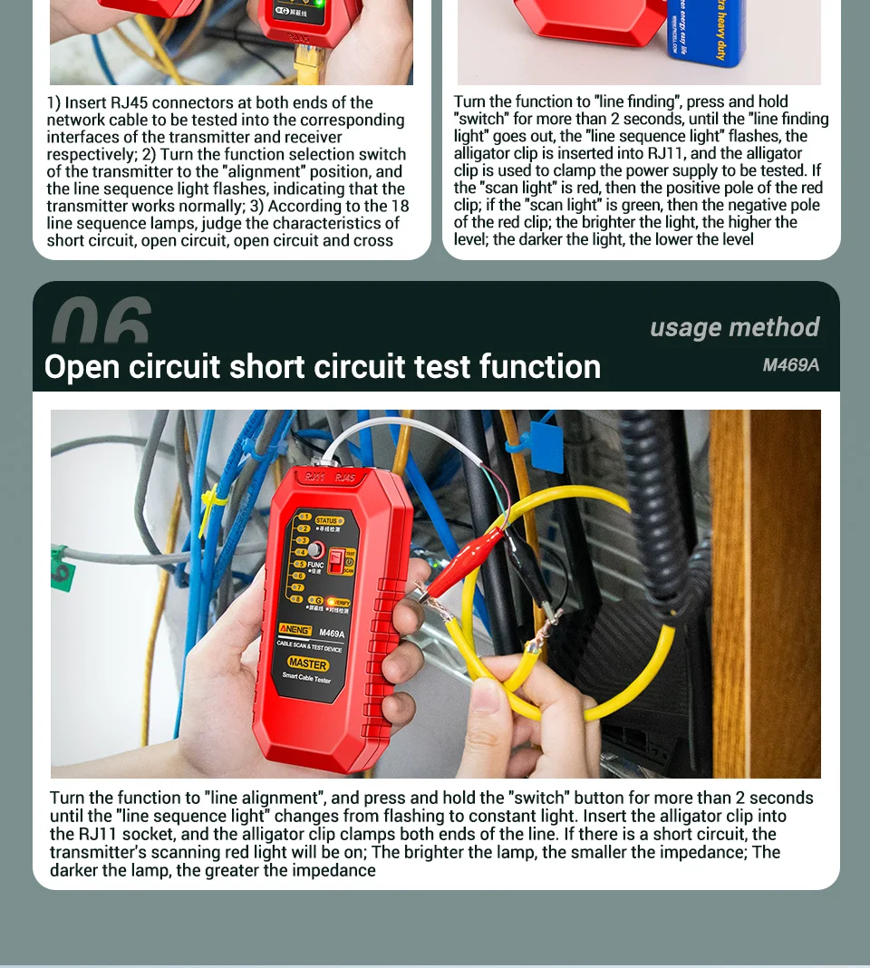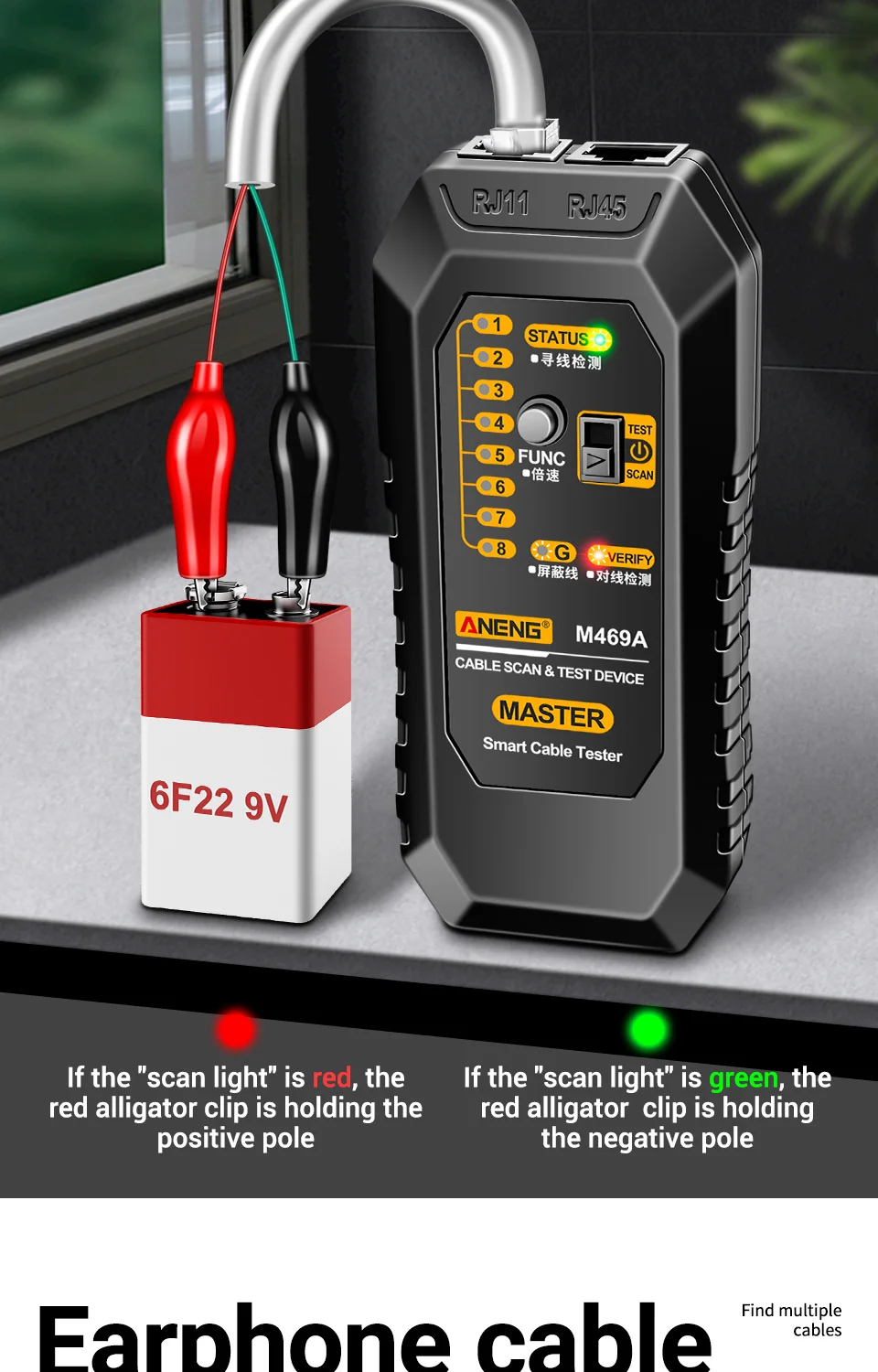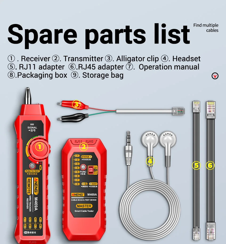 ANENG M469A Smart Network Cable Tester RJ45 RJ11 LAN Cable Tester Finder Wire Tracker Receiver Network Repair Electrical Tool