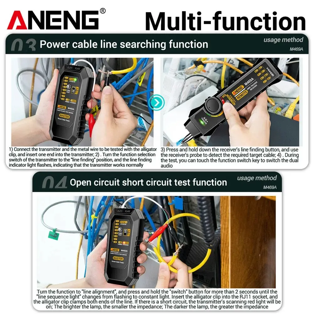 ANENG M469A Smart Network Cable Tester RJ45 RJ11 LAN Cable Tester Finder Wire Tracker Receiver Network Repair Electrical Tool