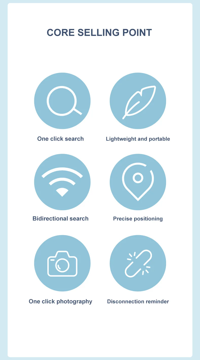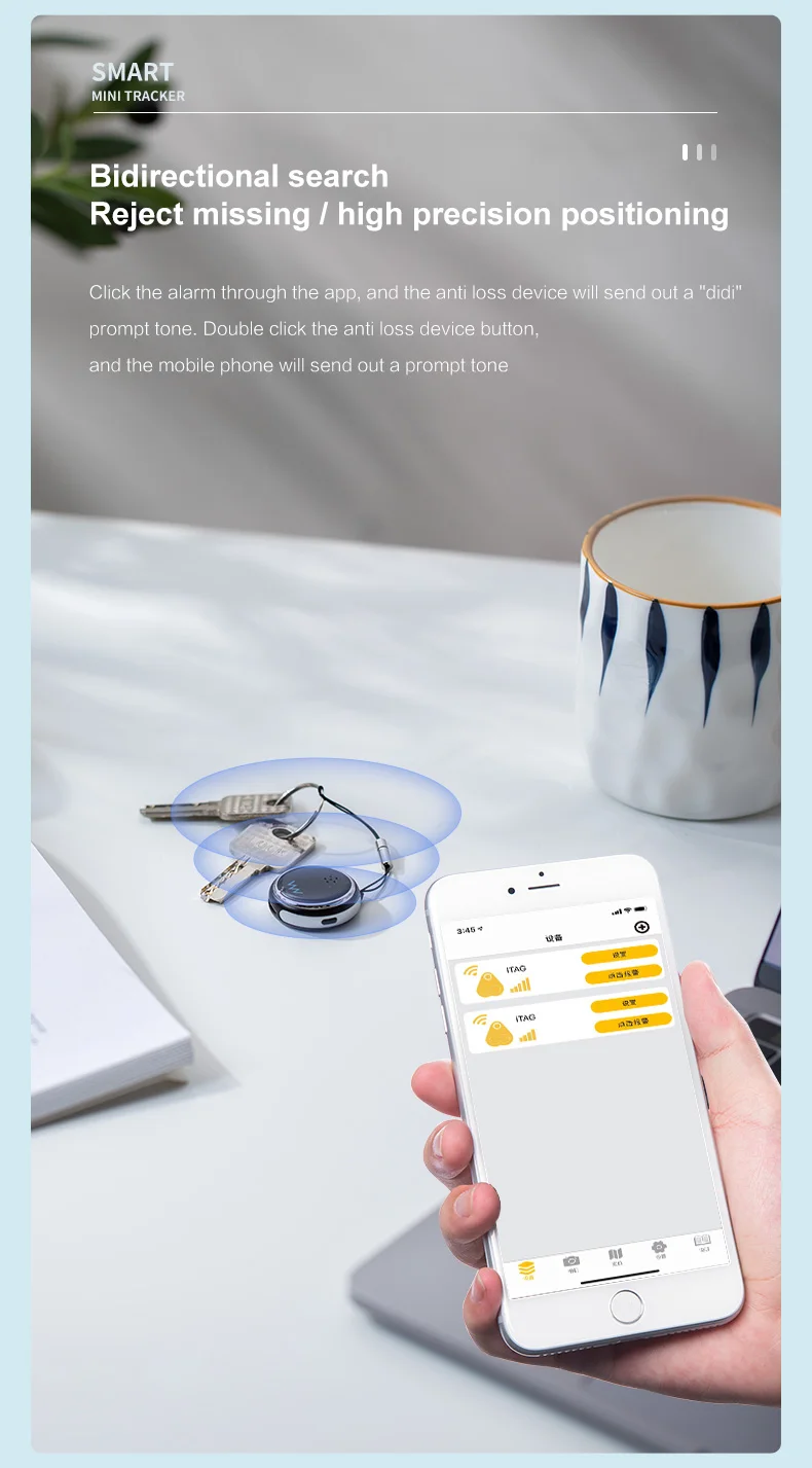 By using APP software and connection with mobile devices such as mobile phones, it is easy to lose items and valuables (such as keys, handbags, etc) Bundled together, to achieve the anti-lost reminder of the item, to find the function of the mobile phone