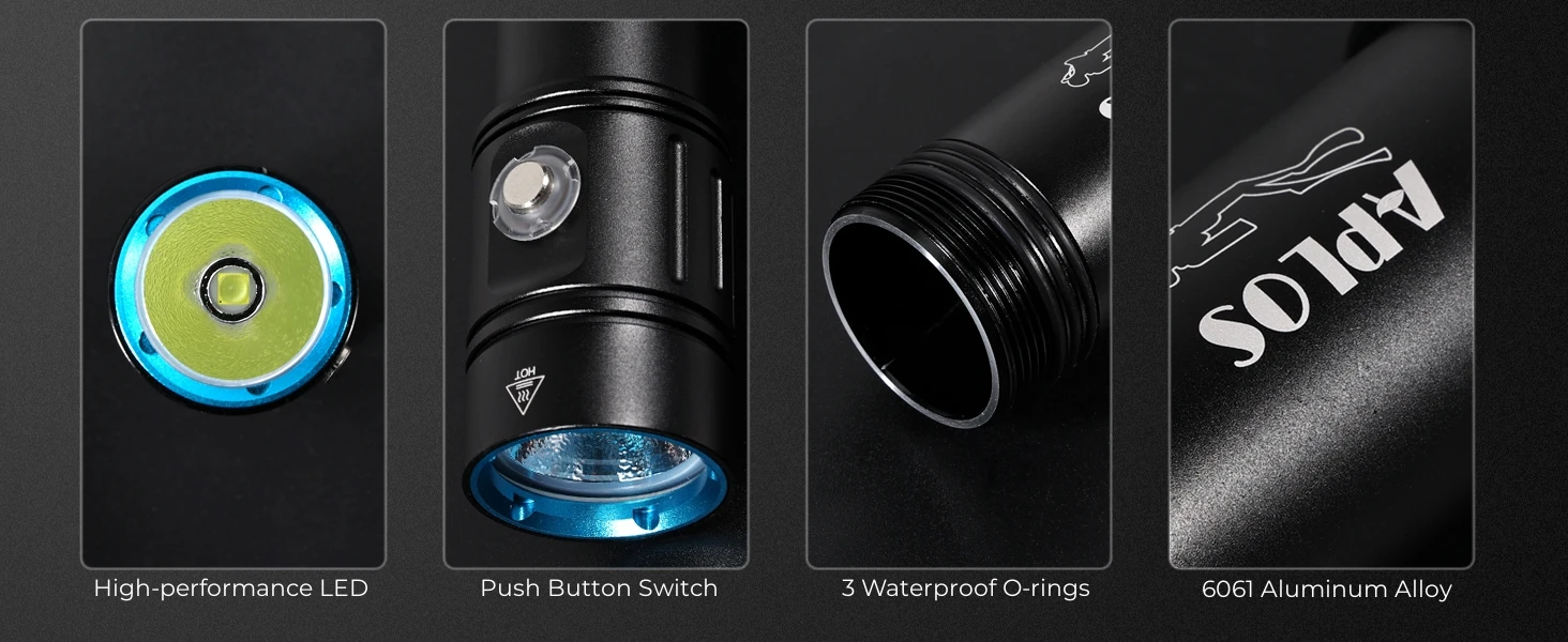 【STURDY & DURABLE】 Made of 6061 aircraft-grade aluminum alloy case, tempered glass lens. Resistant to oxidation, abrasion and saltwater corrosion.