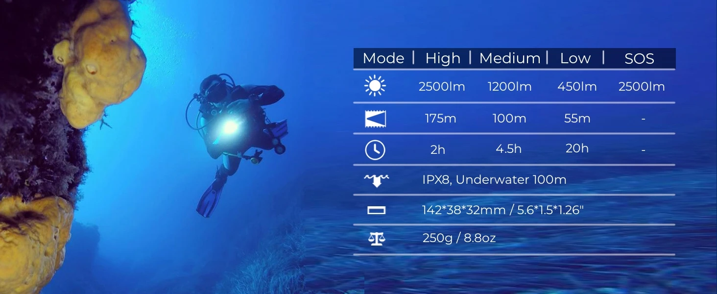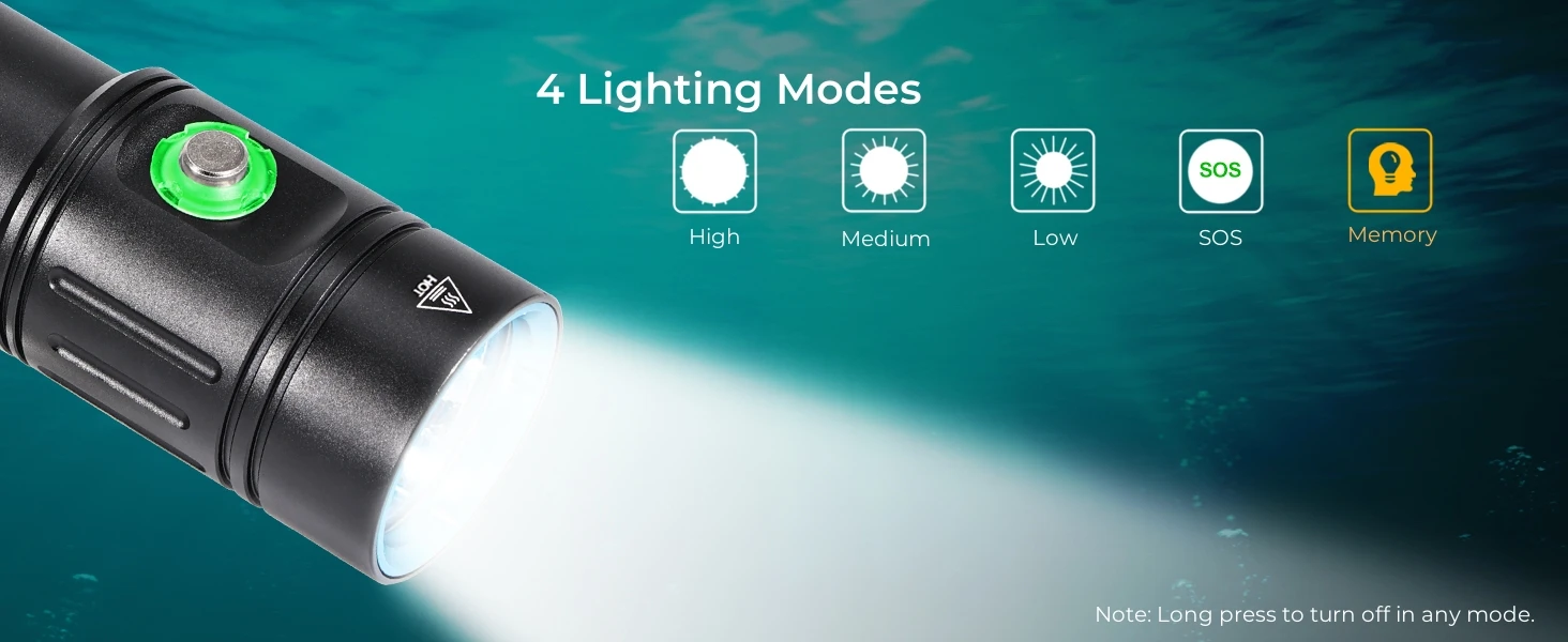 【EASY TO USE】Features the most classic push-button switch that operates 4 modes at the touch of a button. Perfect for diving, fishing, emergencies, etc.