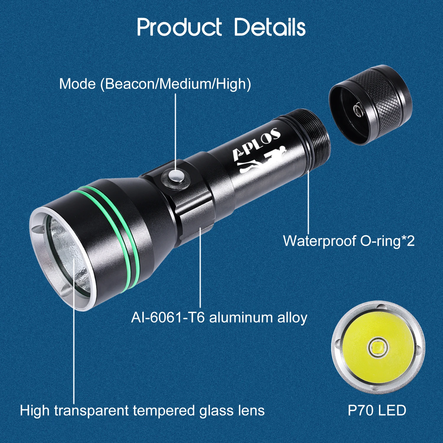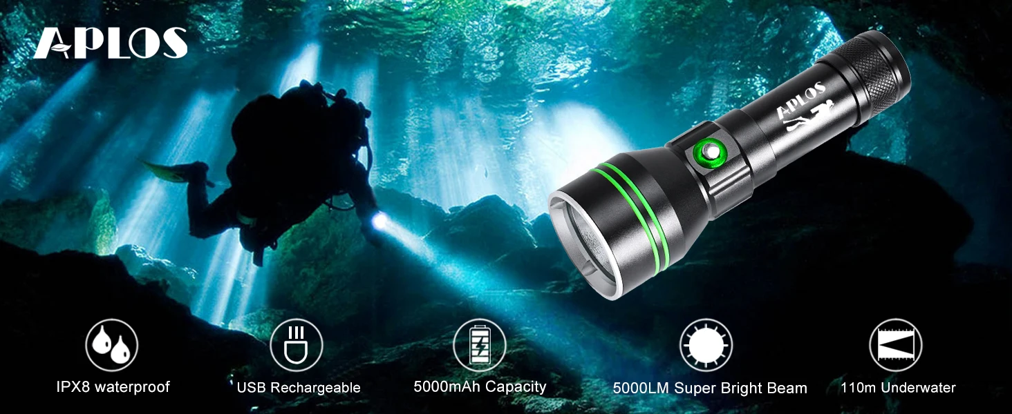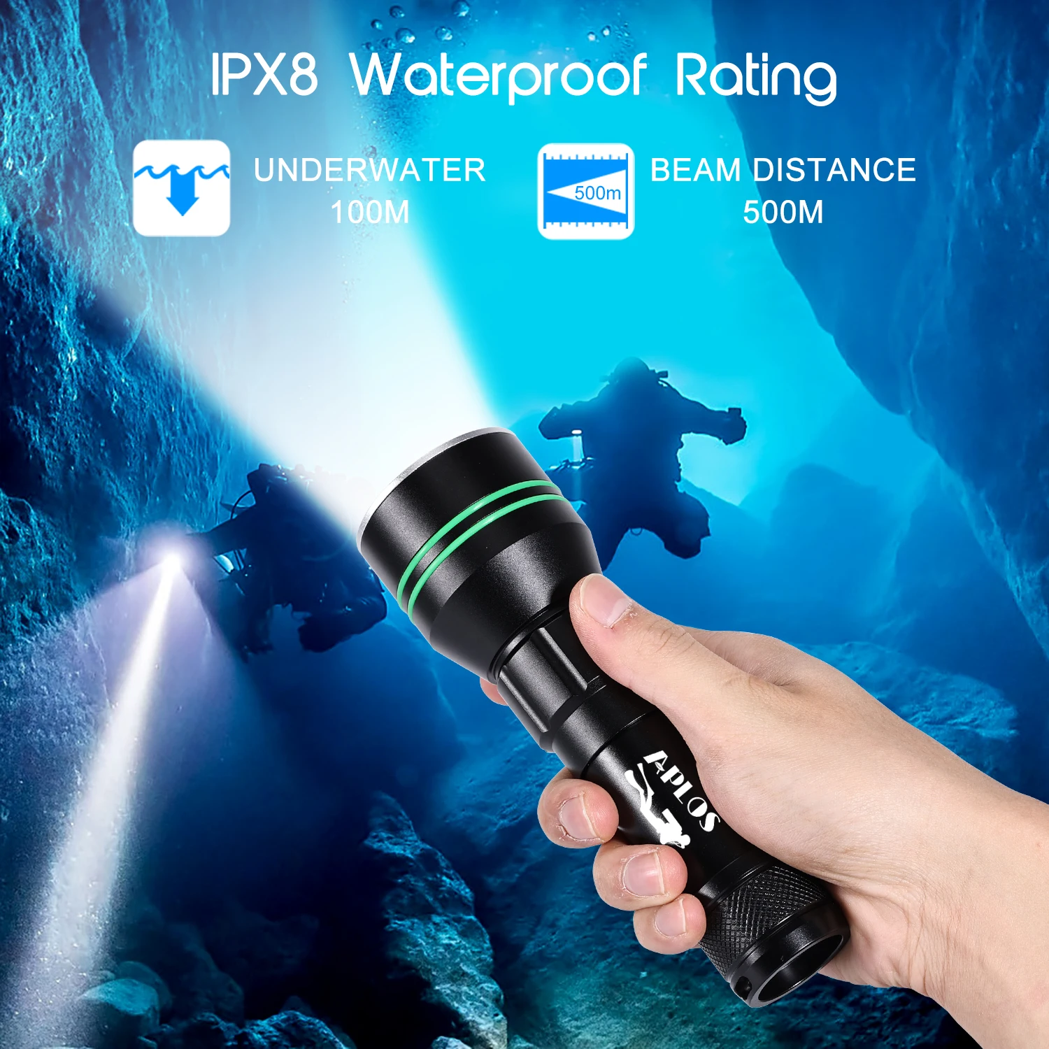 APLOS AP50 Diving Flashlight Super Bright 5000lm Professional Dive light with 26650 IPX-8 Waterproof Underwater Torch Light