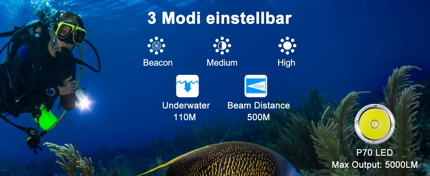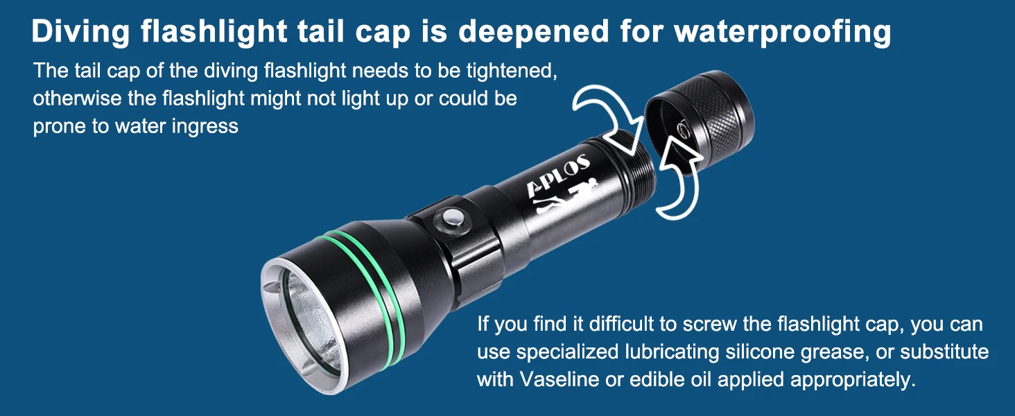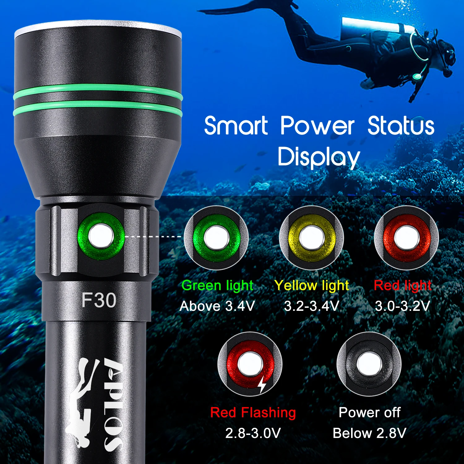 APLOS AP50 Diving Flashlight Super Bright 5000lm Professional Dive light with 26650 IPX-8 Waterproof Underwater Torch Light
