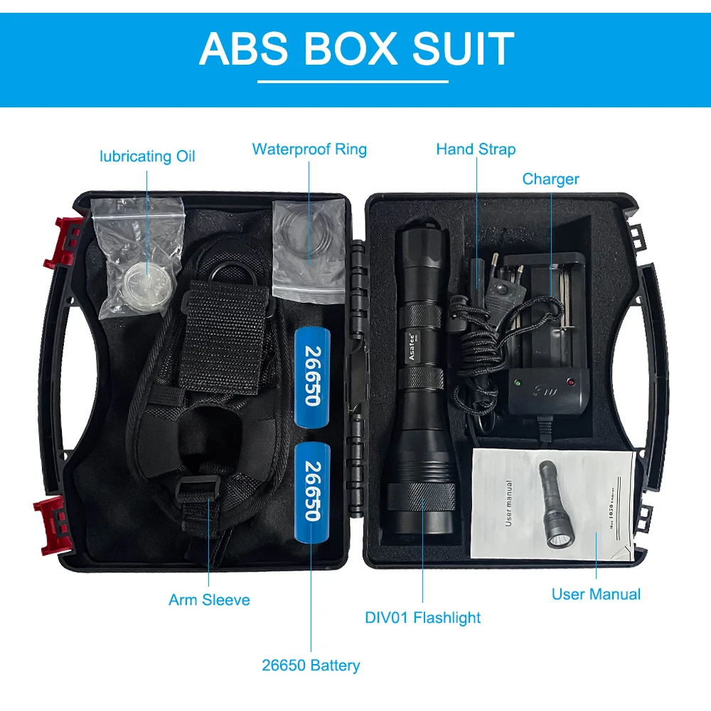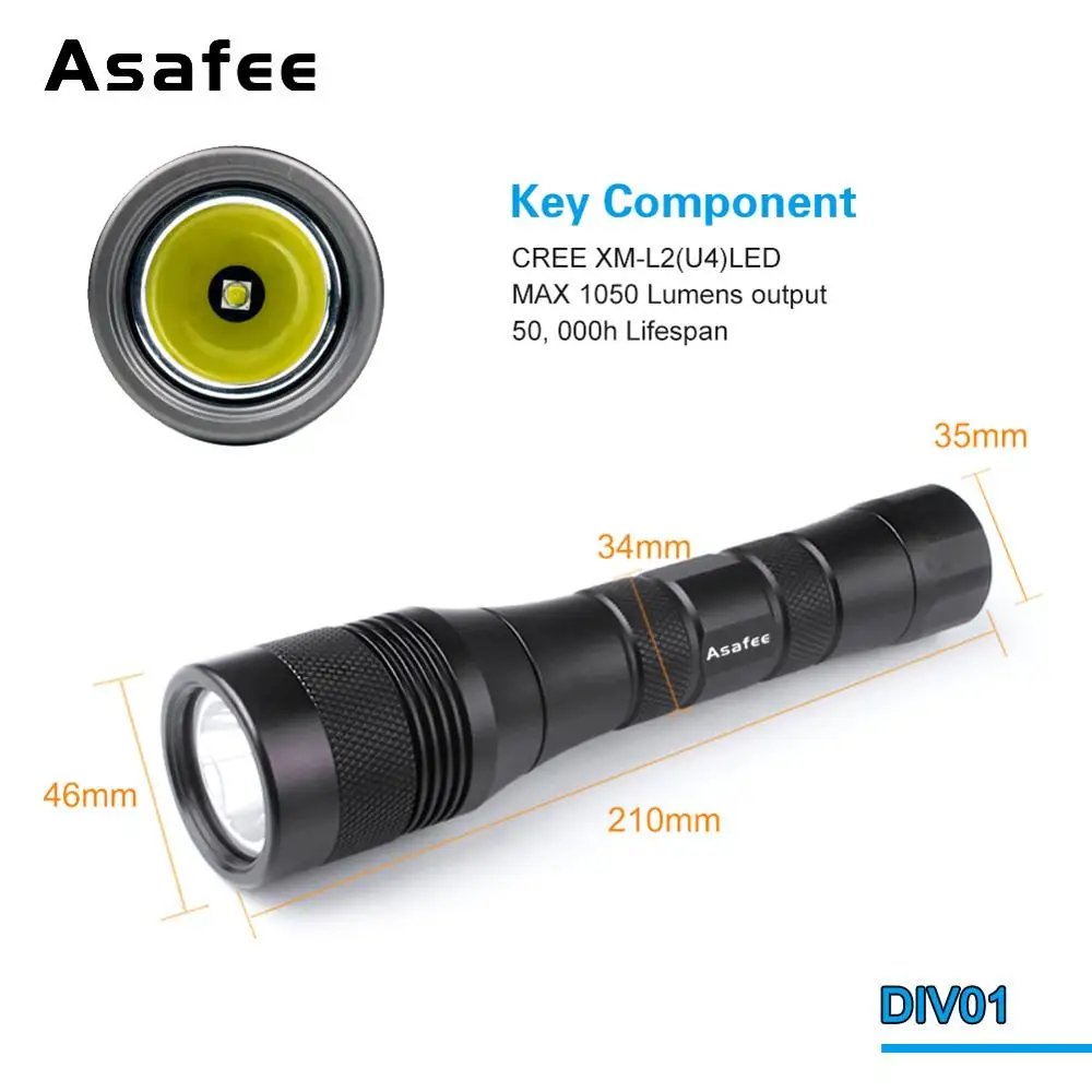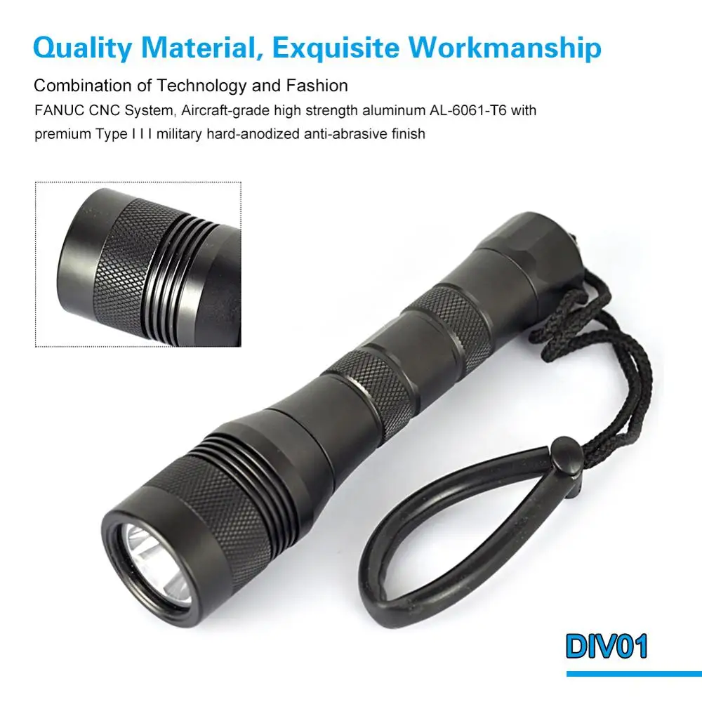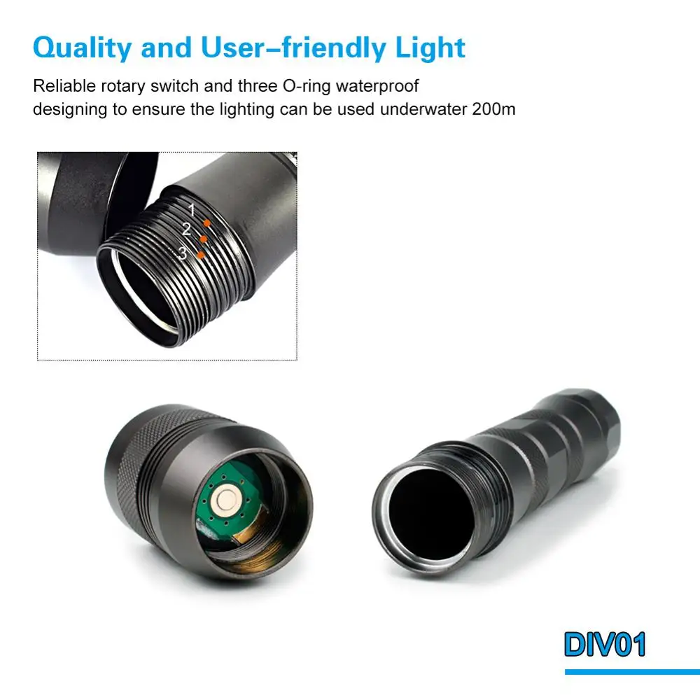 – Please don't drop or place your dive flashlight in sand, in case the sand go into the switch and threads.