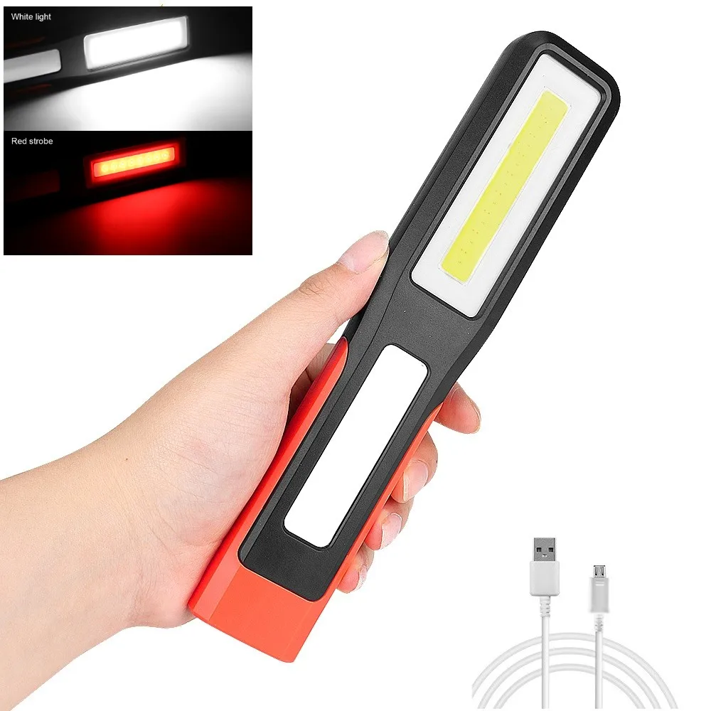 COB LED Working Light 3 Mode Inspection Lamp USB Charging Magnetic Flashlight Swivel Hook Hanging For Car Repairing With Battery