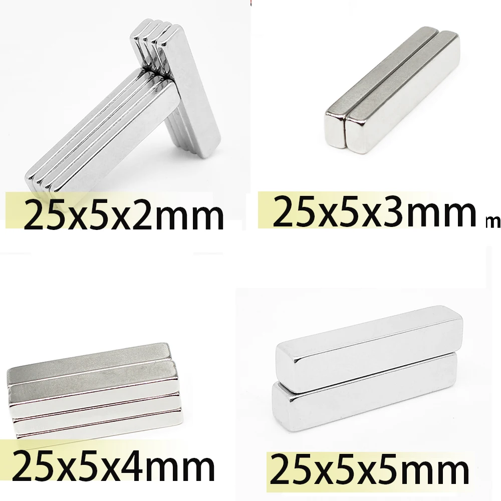 150/200pcs 25x5x2 25x5x3 25x5x4 25x5x5 Neodymium Bar Block Strong Magnets Search Magnetic Bar Ndfeb Square Project Fridge 25×5