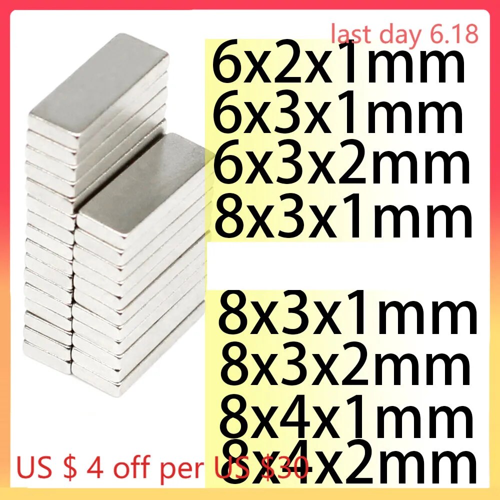 500/1000pcs 6x2x1 6x3x1 6x3x2 8x3x1 8x3x2 8x4x1 8x4x2 Rectangle Square Neodymium Strong Magnet Search Magnetic Block Magnets