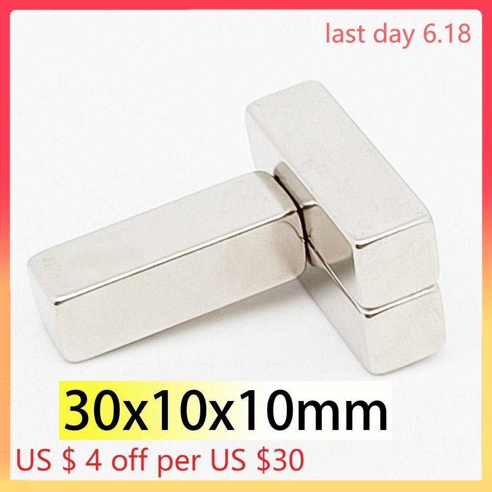 5/10pcs 30x10x10mm Rectangle Neodymium Bar Block Strong Magnets Rare Earth Magnets for Fridge Office Family Search Magnetic