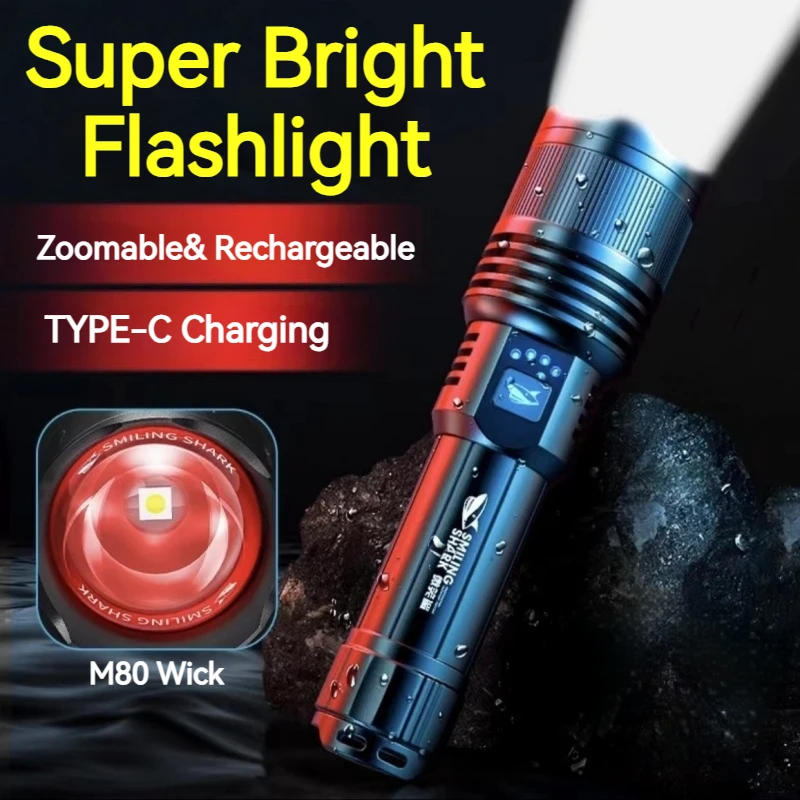 Smiling Shark SD5212 Powerful Flashlight, M80 Super Bright Rechargeable Torchlight, for Outdoor Camping, Fishing, Climbing