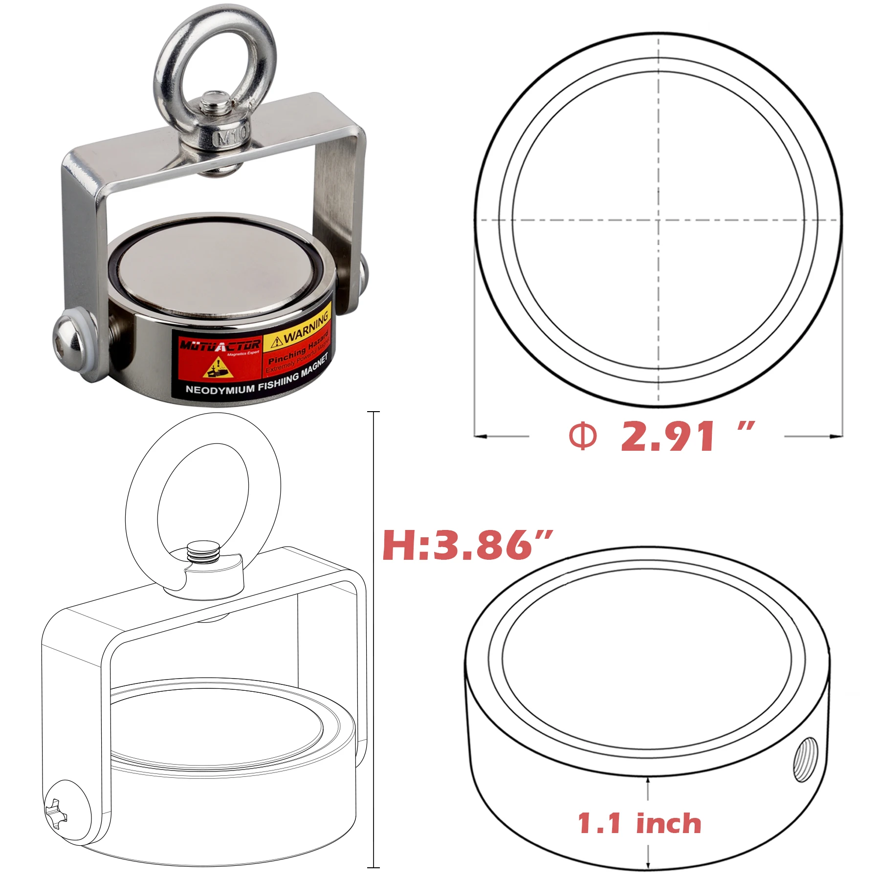 1. Material: Neodymium Magnet N52+A3 Steel+Black Resin
