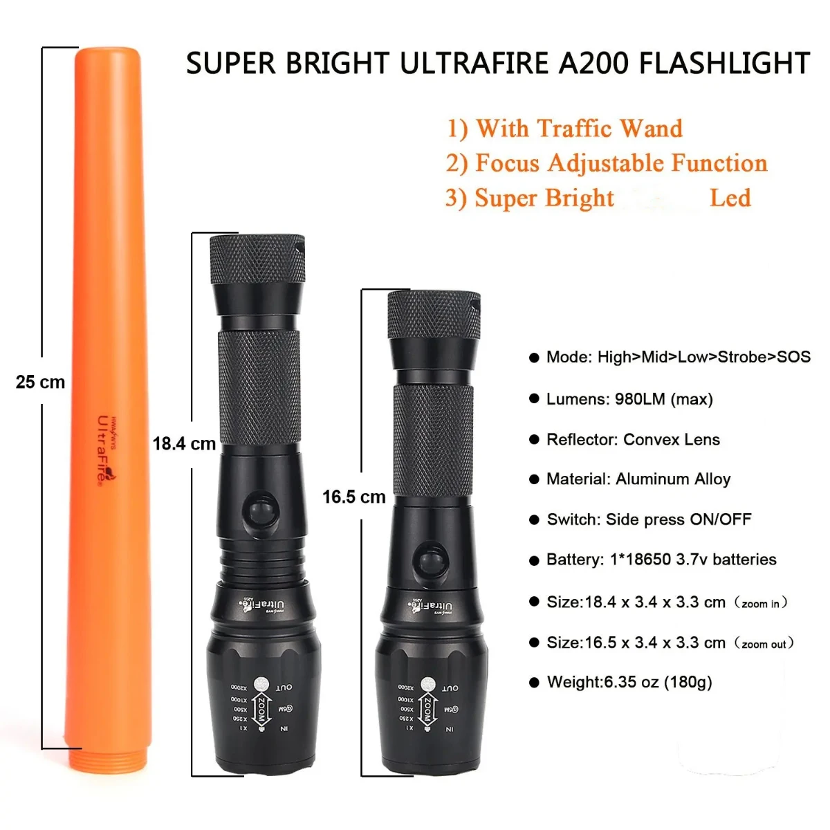 1) Ideal choice:This UltraFire A200 Traffic Wand is perfect for traffic control, parking guides, security, construction sites, emergency signaling, military operation and more.