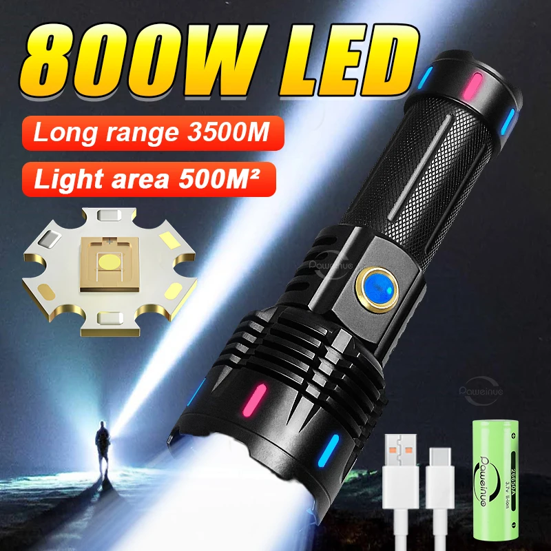 New Ultra Powerful Flashlight 800W LED Rechargeable High Power LED Flashlights 3500M Long Range Torch Outdoor Tactical Lantern