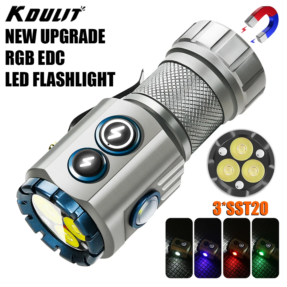 New RGB Powerful LED Flashlight Type-c Rechargeable Mini EDC Tactical Torch with Tail Magnet Emergency Fishing Camping Lantern