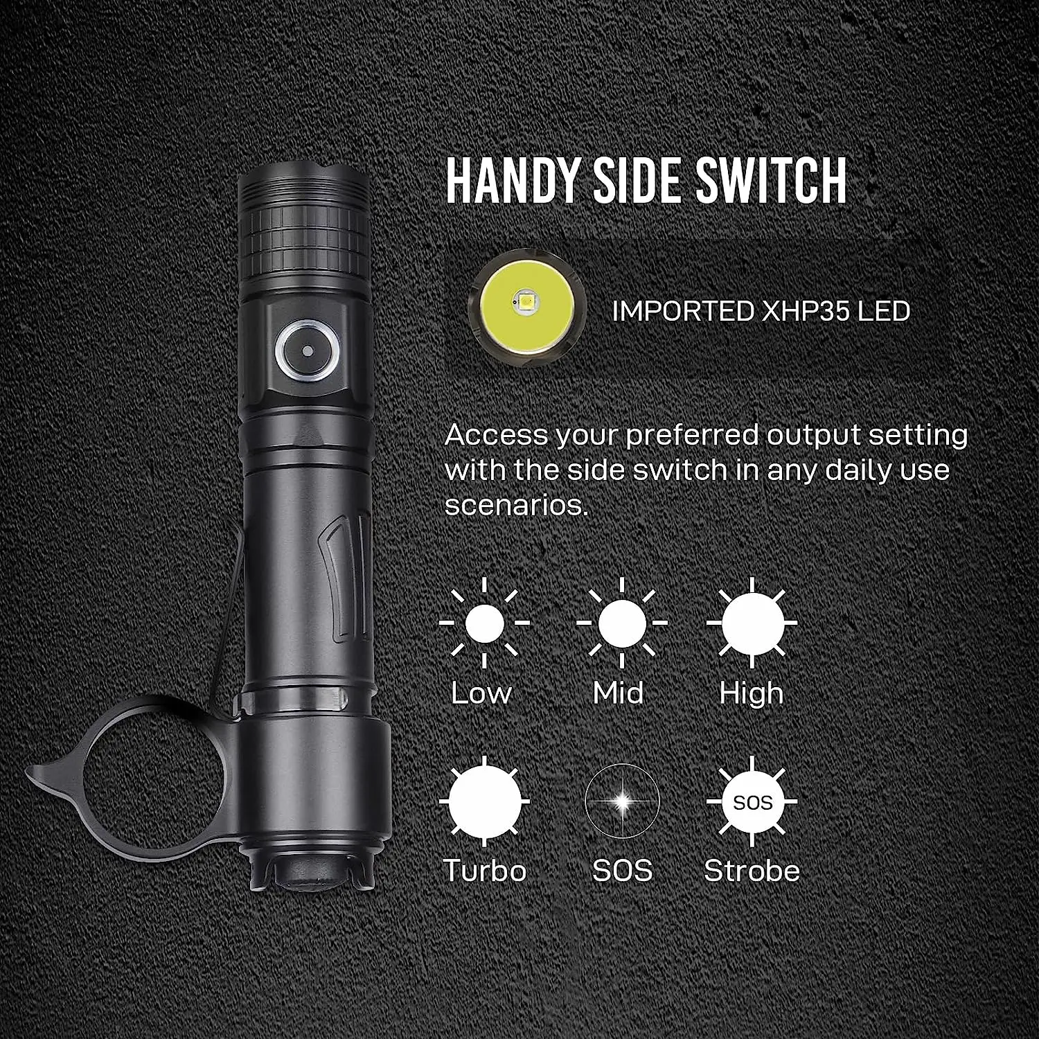 【SIMPLE OPERATION】- Compact built body features a tactical tail switch for momentary-on, momentary-strobe, and constant-on, easy to light up the dark with 1 hand