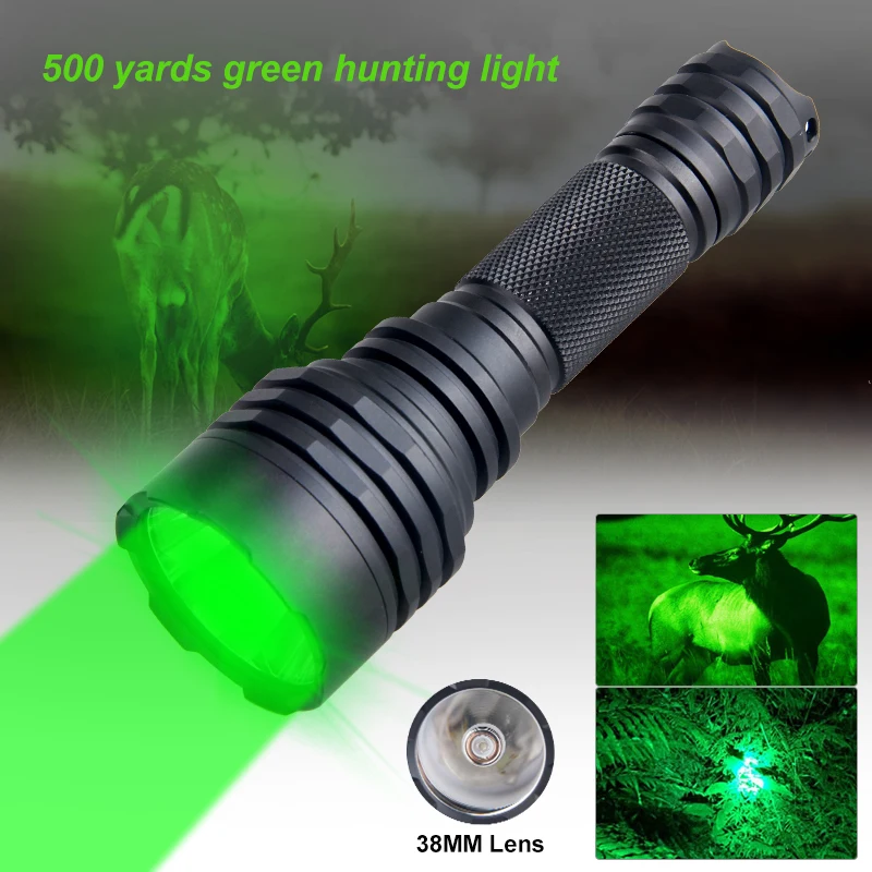 C8s 500 Yards Green Red Flashlight Outdoor Night Hunting Predator Torch for Coyote Hog Varmint+18650+Charger