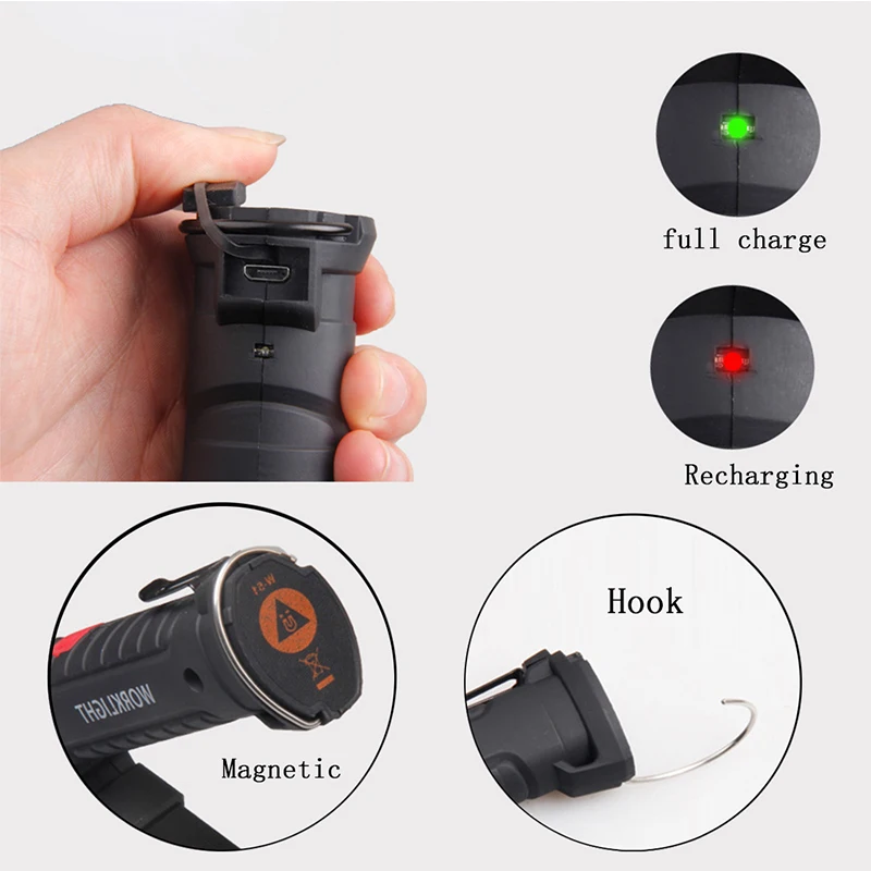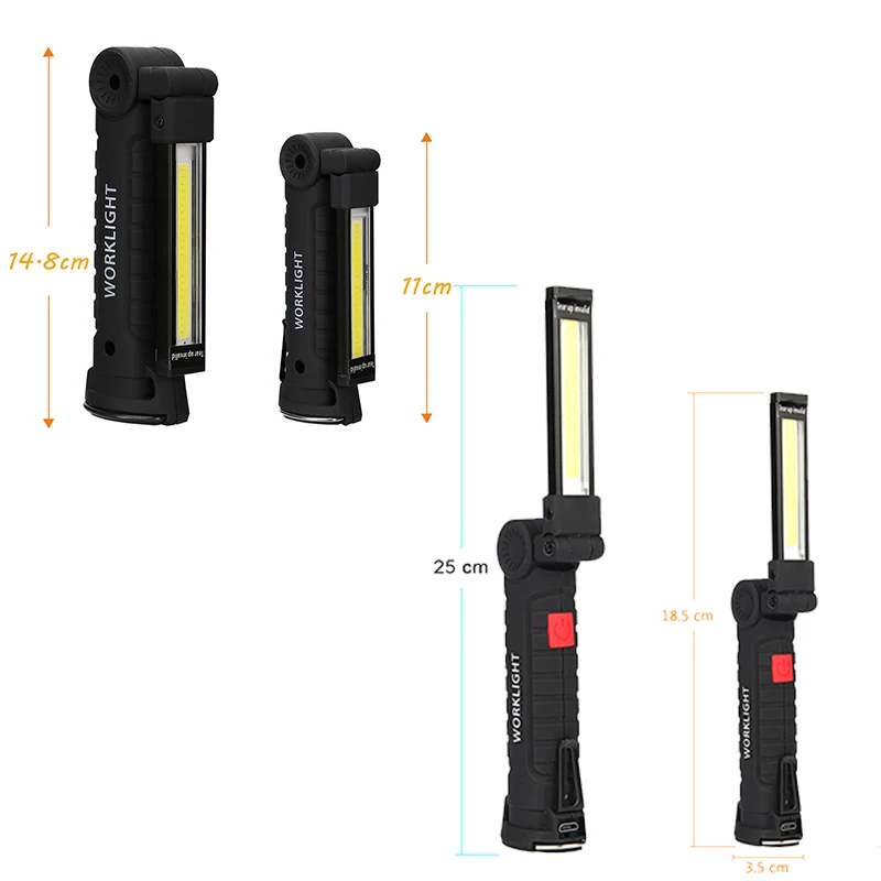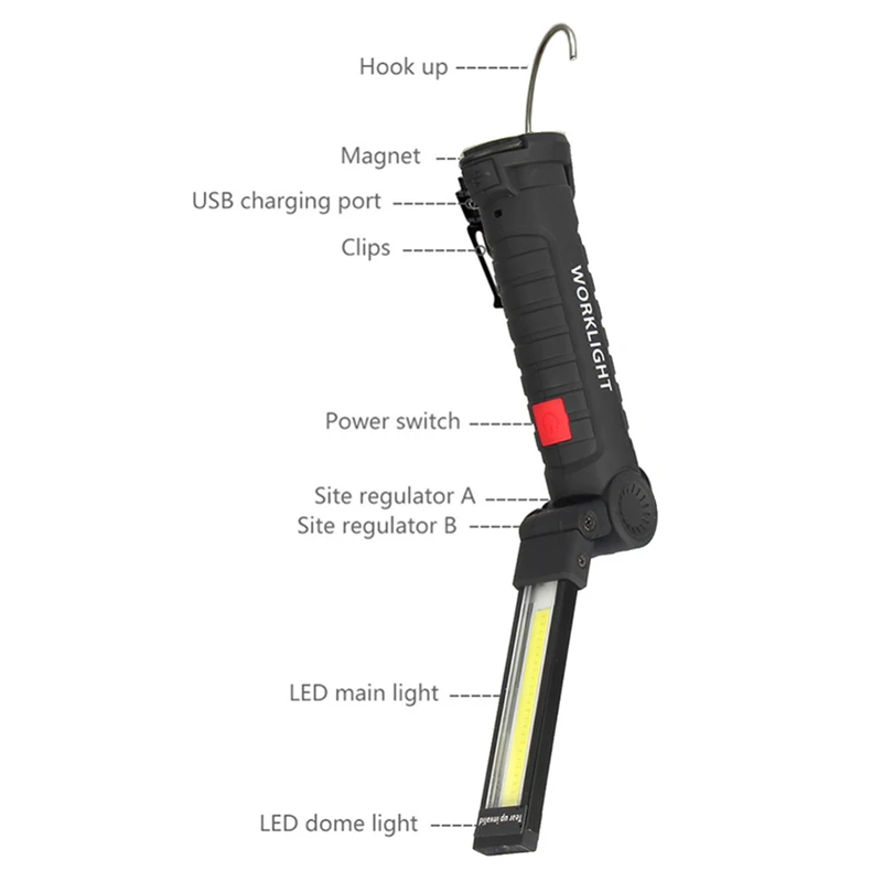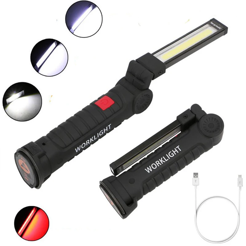 Car Repair LED Working Lamp Flashlight COB Torch Built-in Battery Flash Light Tail Magnet Portable USB Rechargeable Work Light