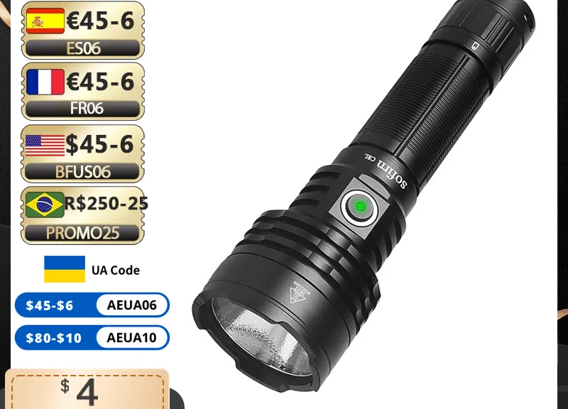 Price: Sofirn SP31 V2.0 flashlight is an upgraded version of the Sofirn SP31, with Advanced Temperature Regulation (ATR) technology, battery power indicator and improved user interface.It can be operated from a single 18650 Li-ion rechargeable battery or two CR123A batteries. It features 7 modes:Eco– Low –Medium–High–Turbo, hidden strobe and SOS, by one side switch and […]