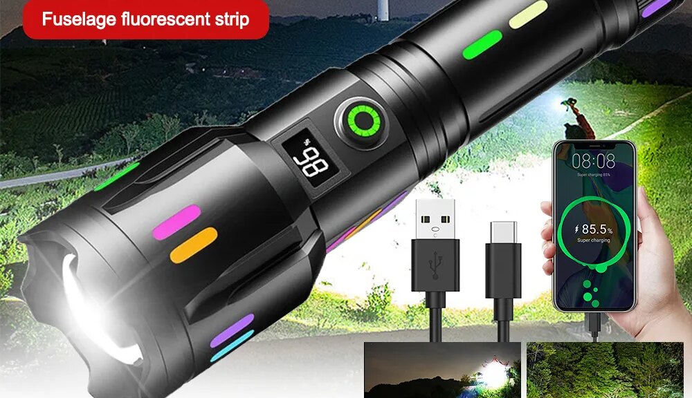 New Powerful Led Self Defense Flashlight 18650 Rechargeable USB Tactical Flashlights Torches Outdoor Search Hand Lamp Emergency