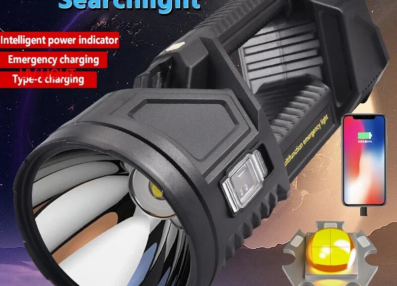 Most Powerful XHP70 LED Searchlight Solar Work Light Outdoor Multifunctional LED Flashlight USB Rechargeable Camping Lantern