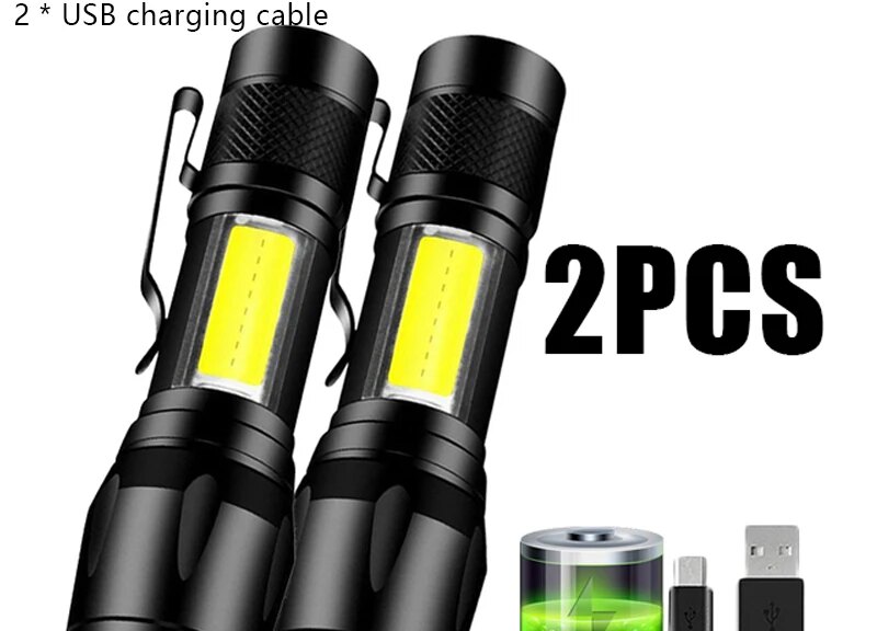 Mini Rechargeable LED Flashlight COB+XPE Portable Torch Camping Lantern Zoomable Focus Light Tactical Flashlight with Pen Clip