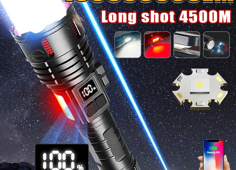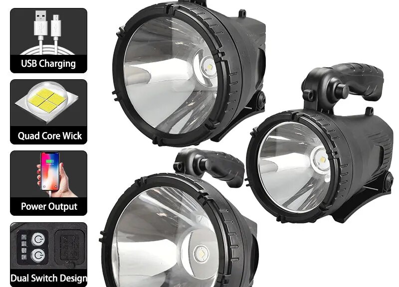 LED Powerful Spot Lights Portable Handheld Flashlight Lamp Rechargeable 1700LM 6 Lighting Modes Emergency Camping Searchlight